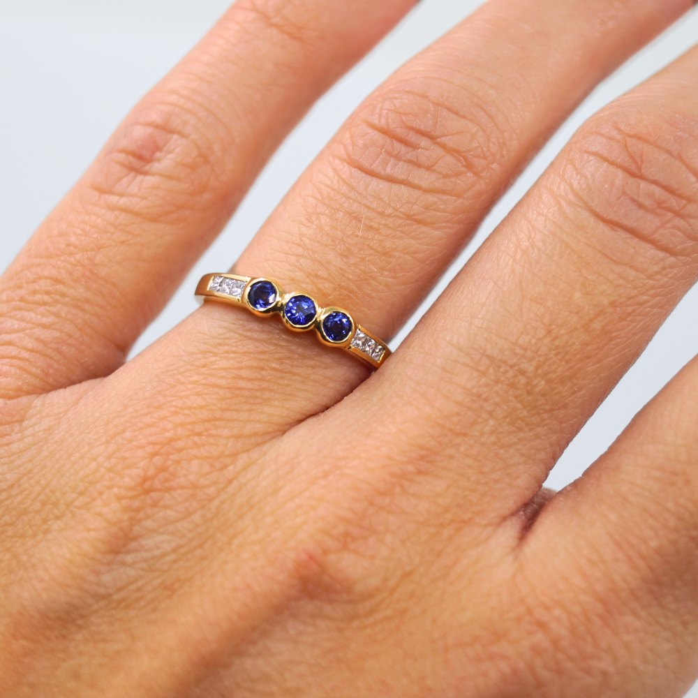 Ring in 18k gold, set with sapphires and diamonds