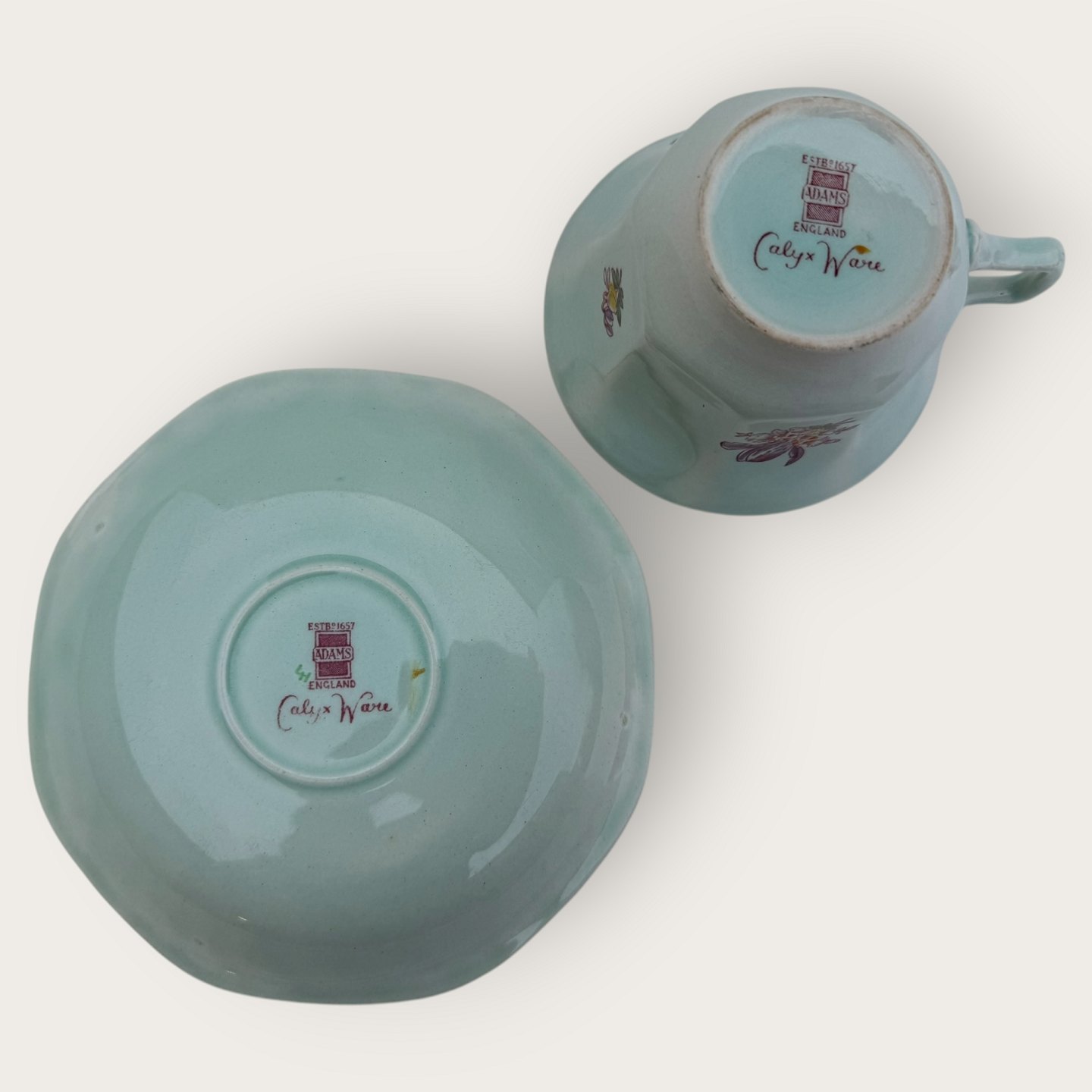 Adams Calyx Ware, Chelsea Sprays red, Small teacup, approx. 6.5cm high and 9.5cm in diameter *Good used condition*