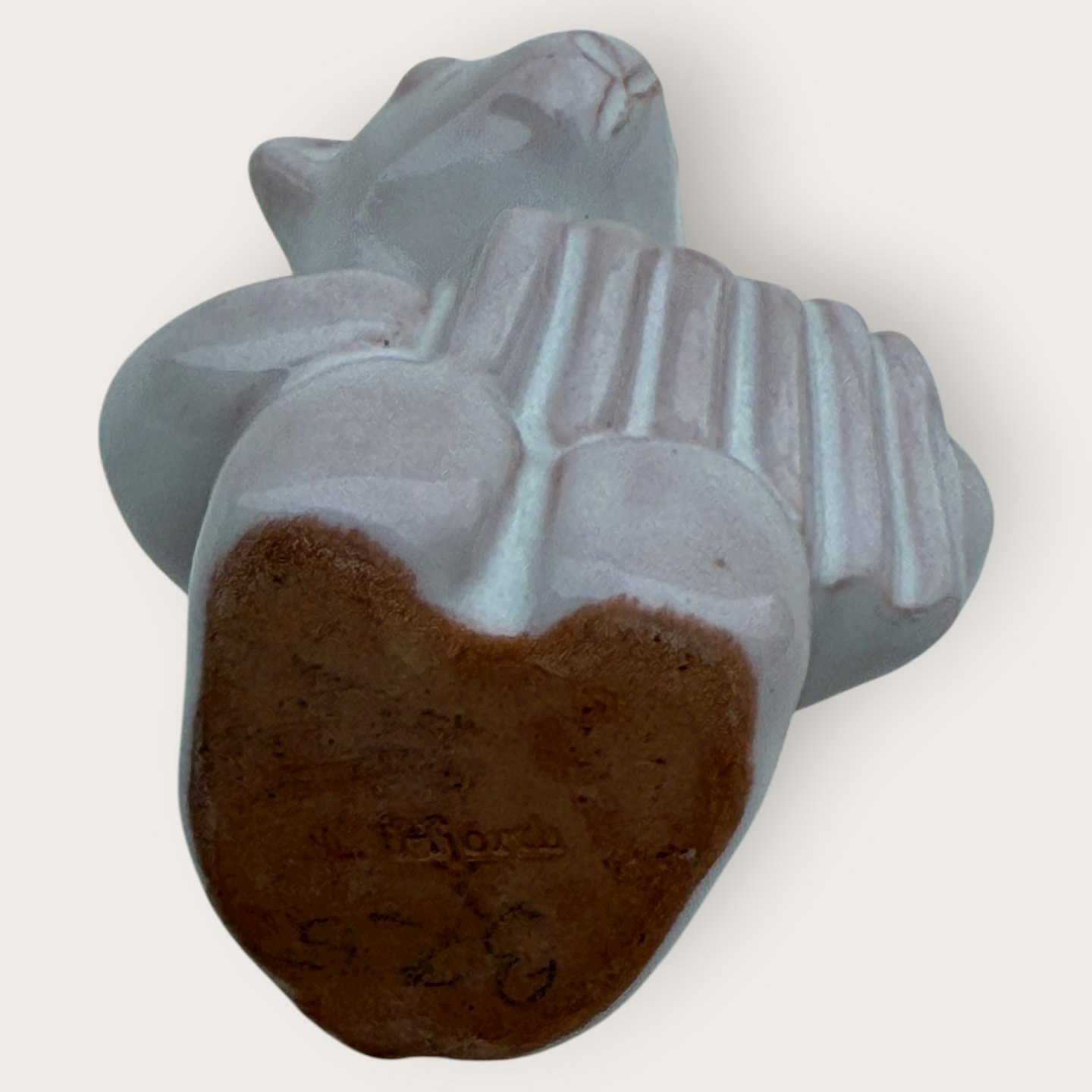 Bornholm pottery, Hjorth, Bear orchestra, Accordion, bear with white glaze, approx. 6x5cm *Good condition*