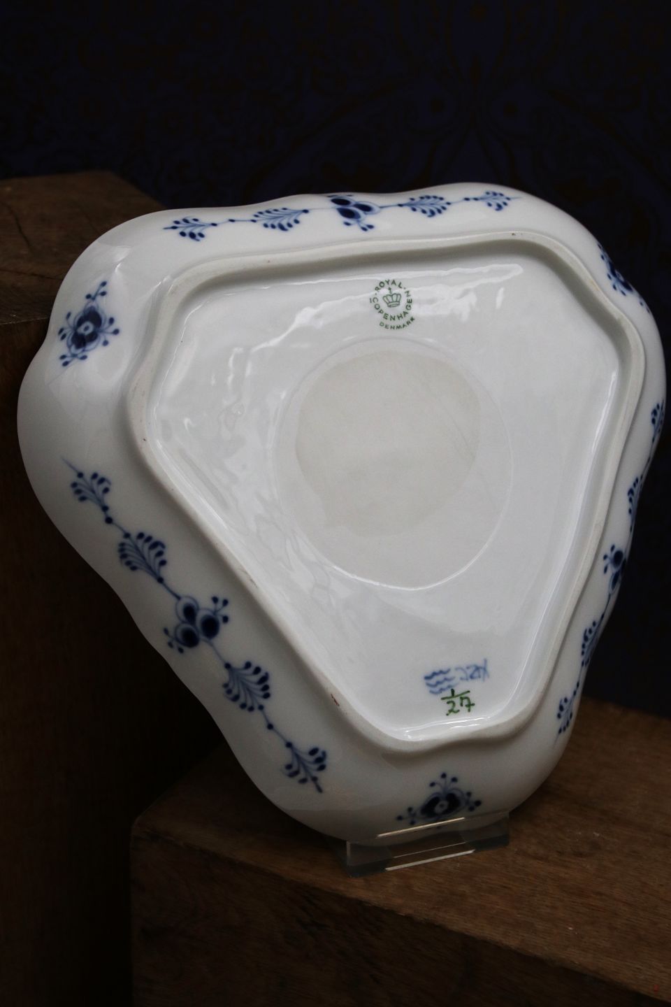 3-cornered cake plate / salad plate in Fluted Blue Plain from Royal Copenhagen.