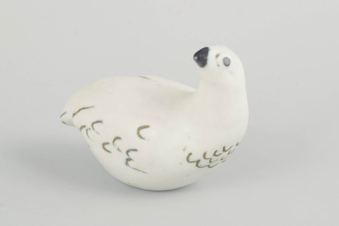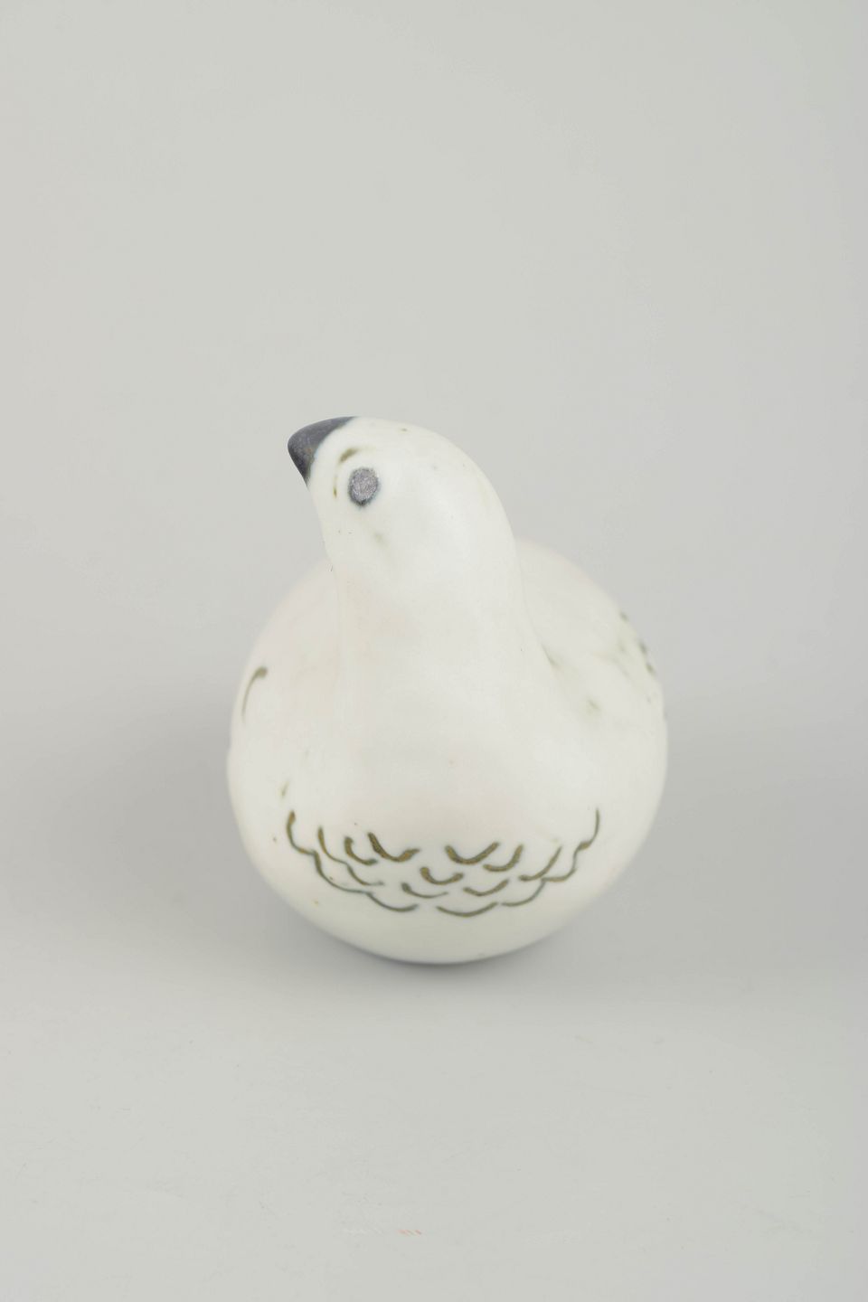 Sculptural bird figure in glazed stoneware, shaped with soft lines and simple brush decoration in green and black tones. Characteristic of Allert’s organic and nature-inspired expression.