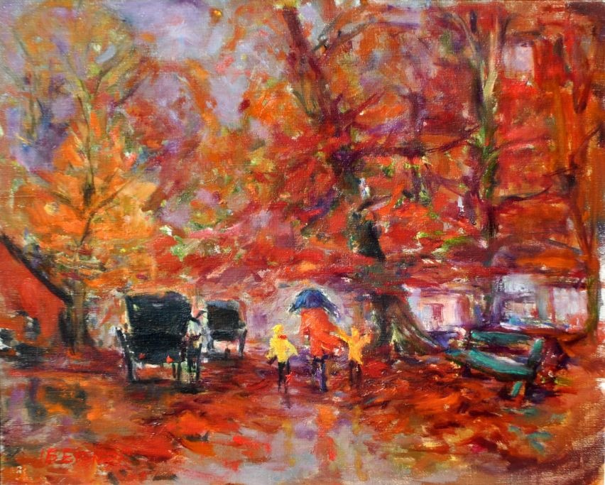 Eisner, Ib (1925 - 2003) Denmark. October rain, Dyrehaven. Oil on canvas. Signed. 40 x 50 cm. Verso marked.