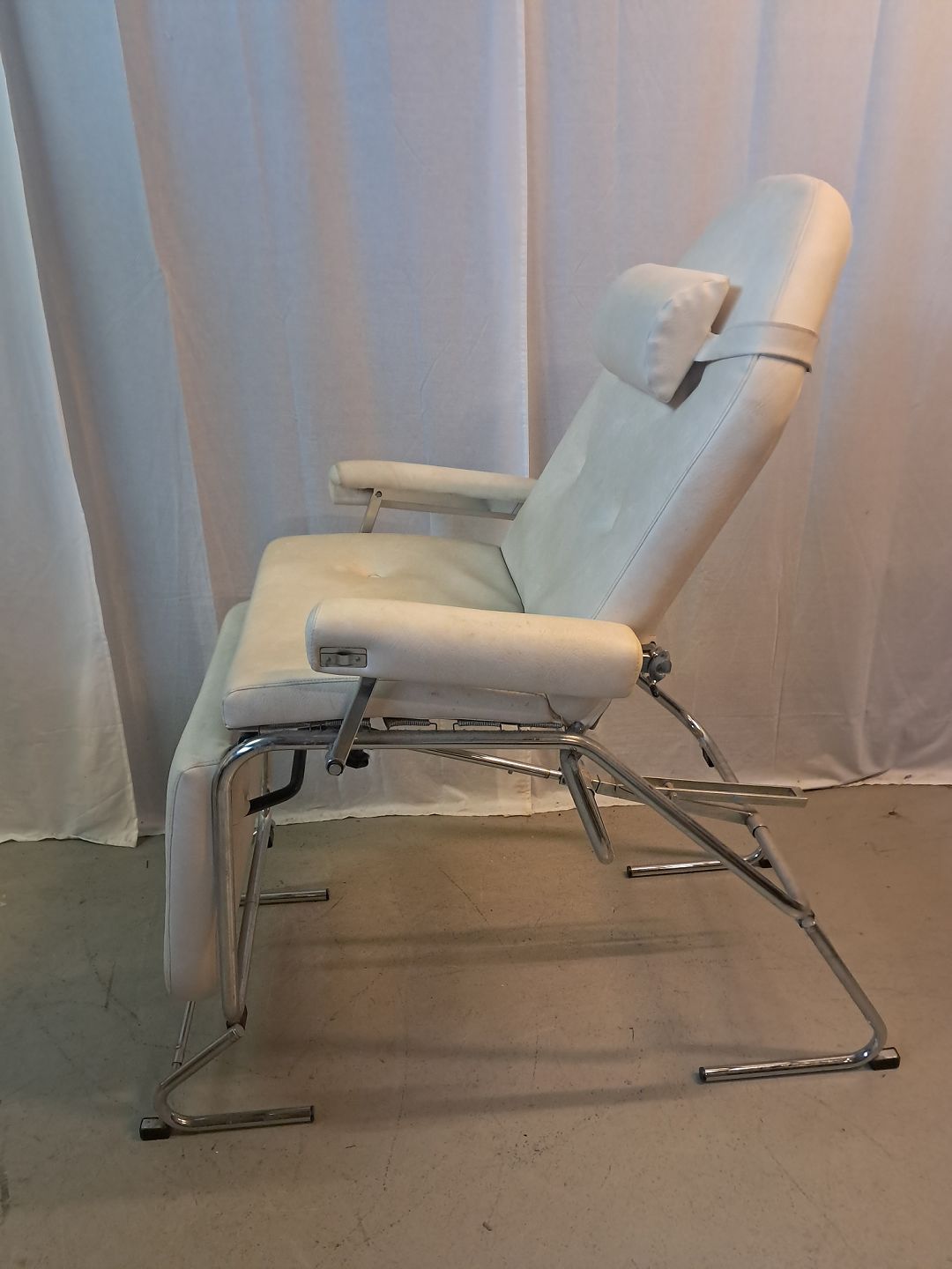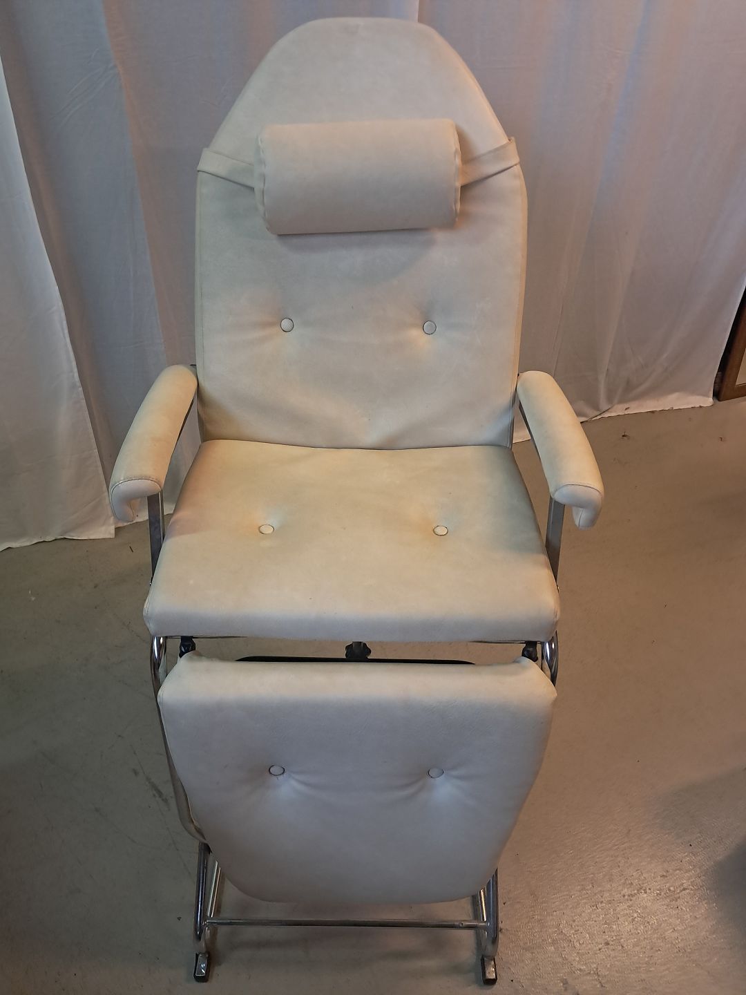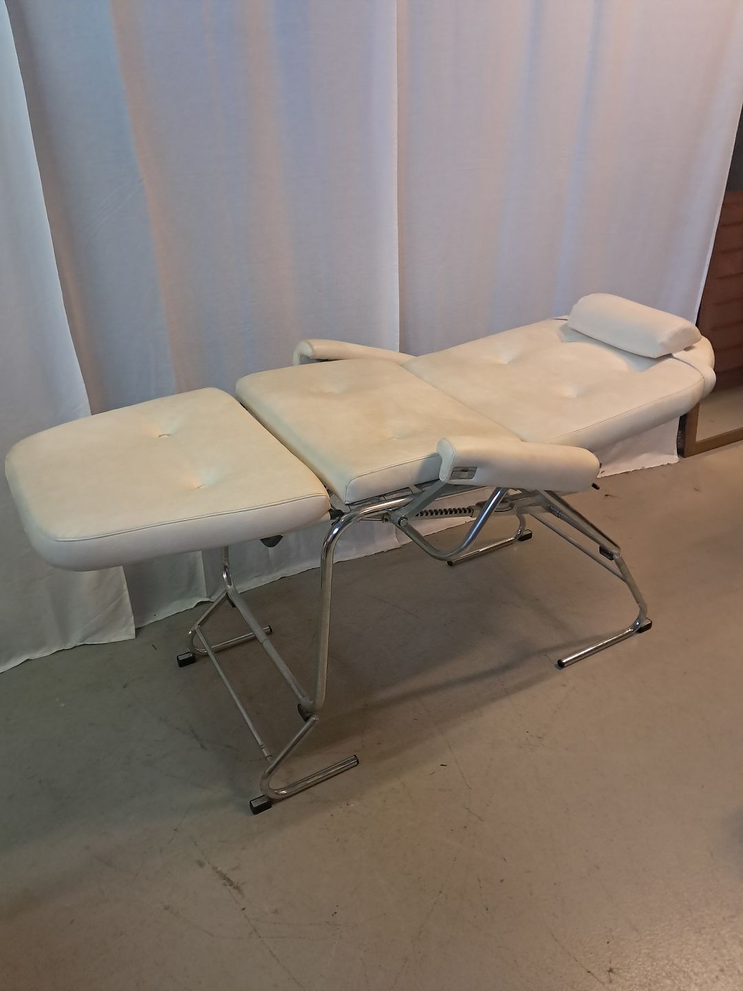 Massagse-stol og briks i metal og kunstlæder, fra 1990erne.