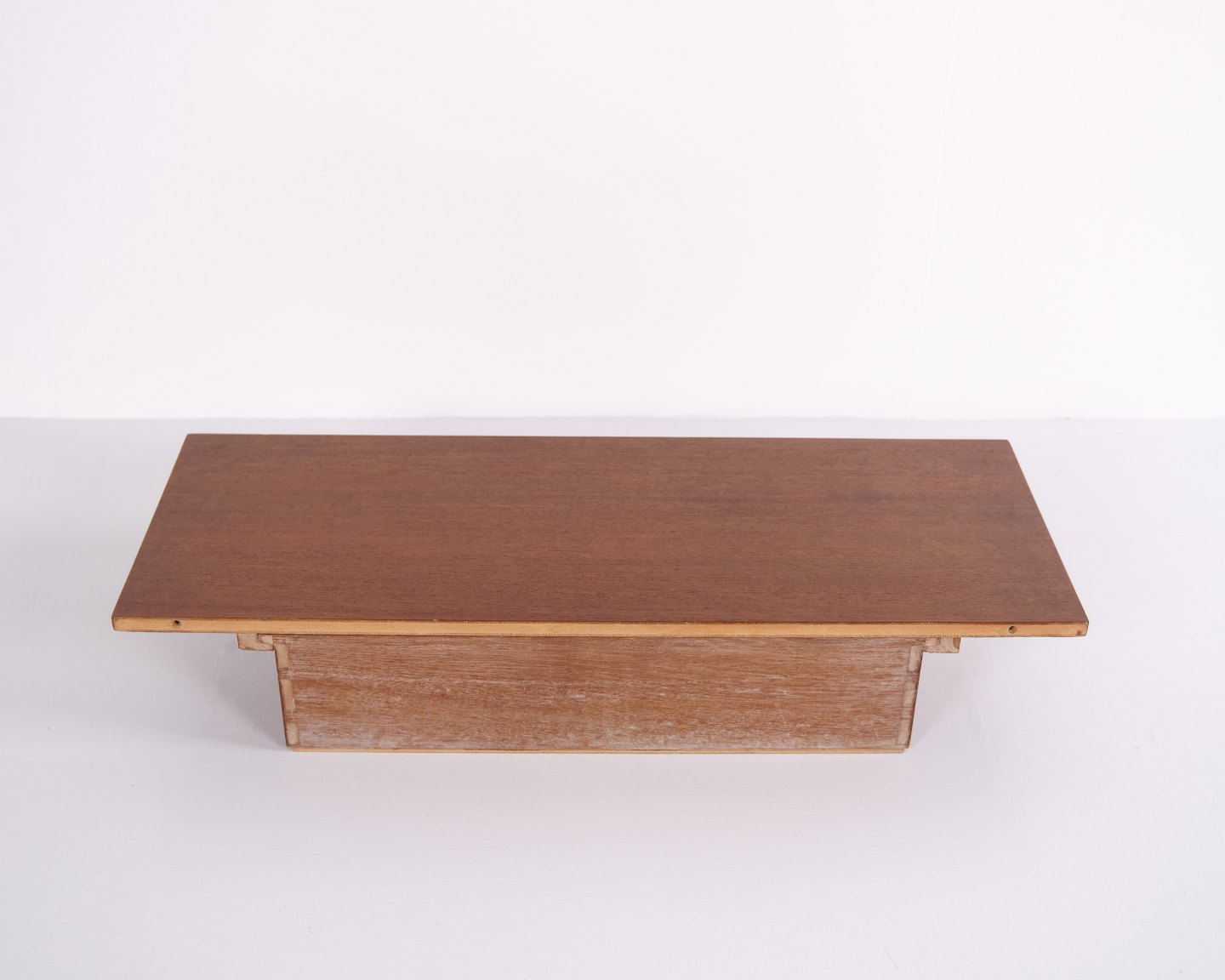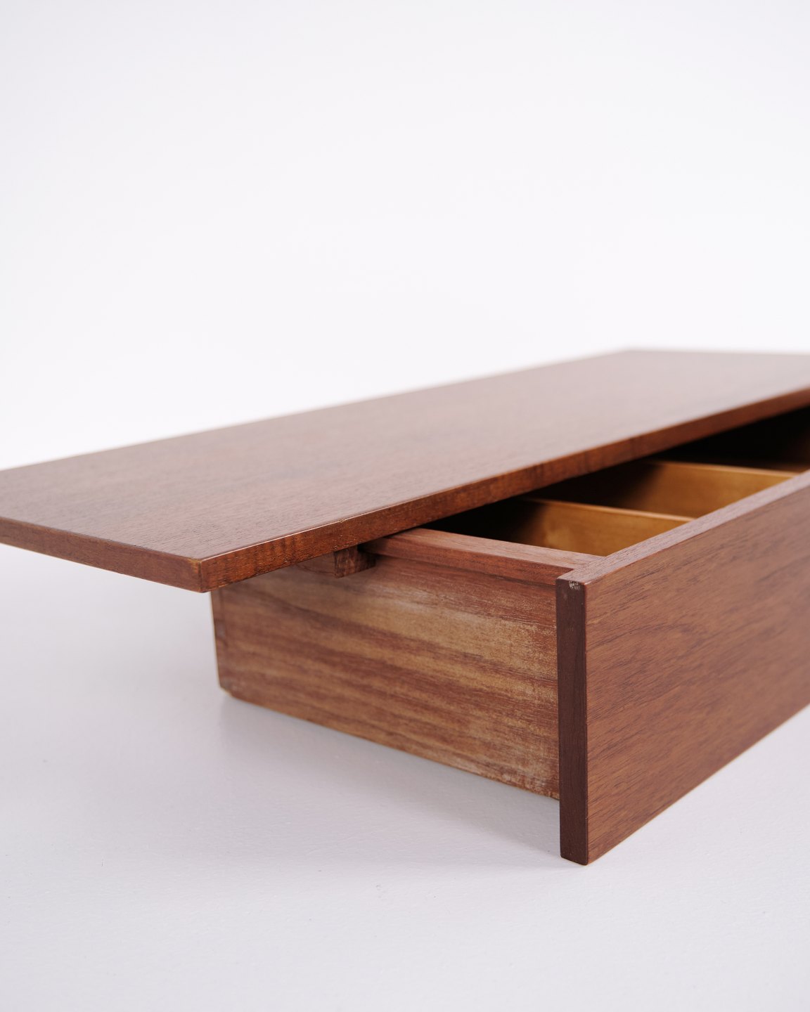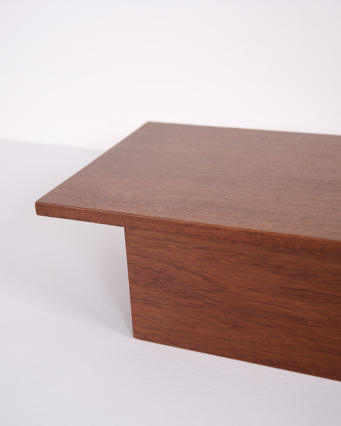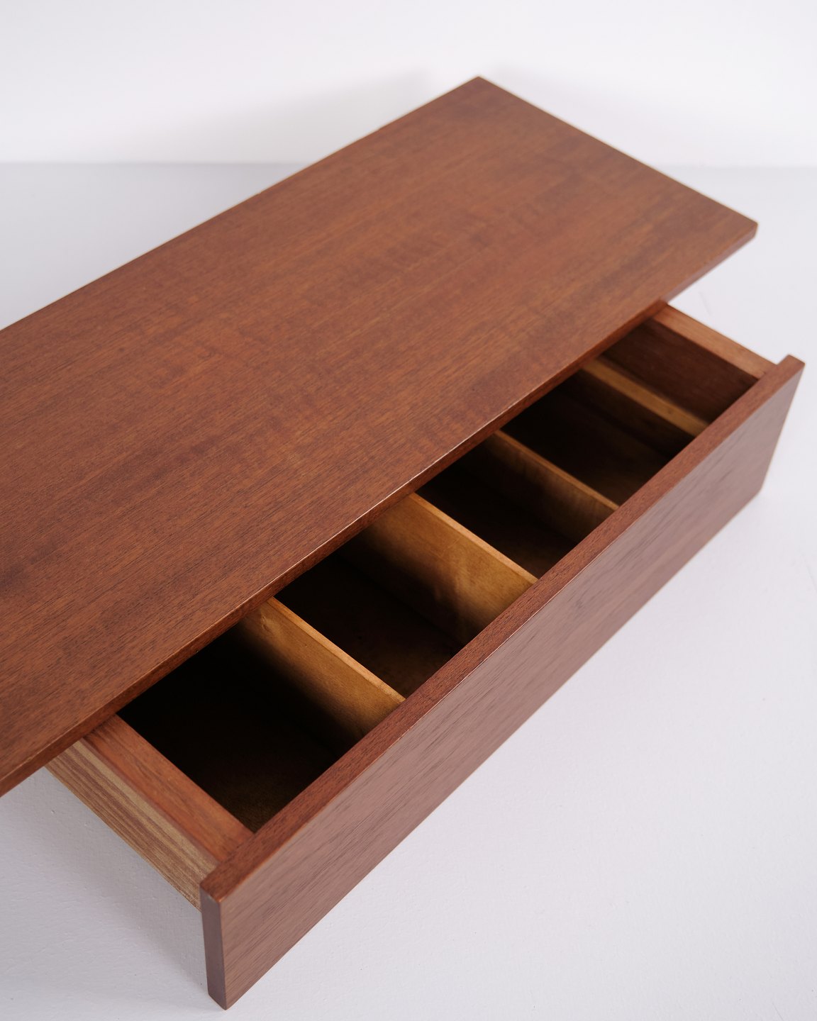 Wall-mounted shelf from the 1960s, made of teak with a spacious drawer integrated into the front.
