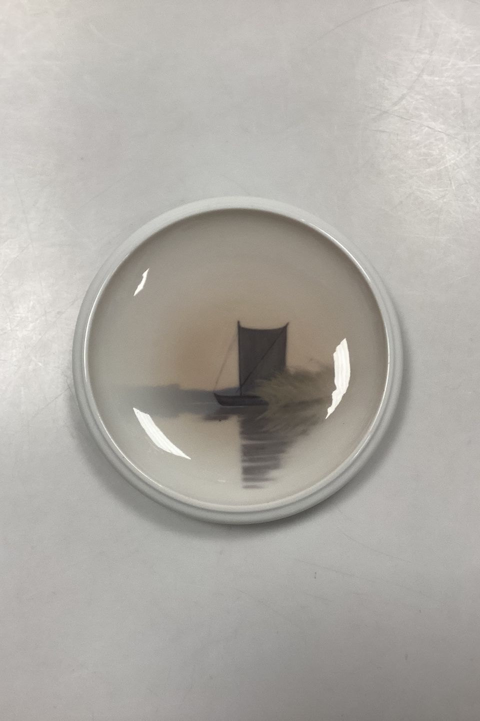Royal Copenhagen Plate/Dish No. 2506/2568. Motif with sailboat in the evening twilight.