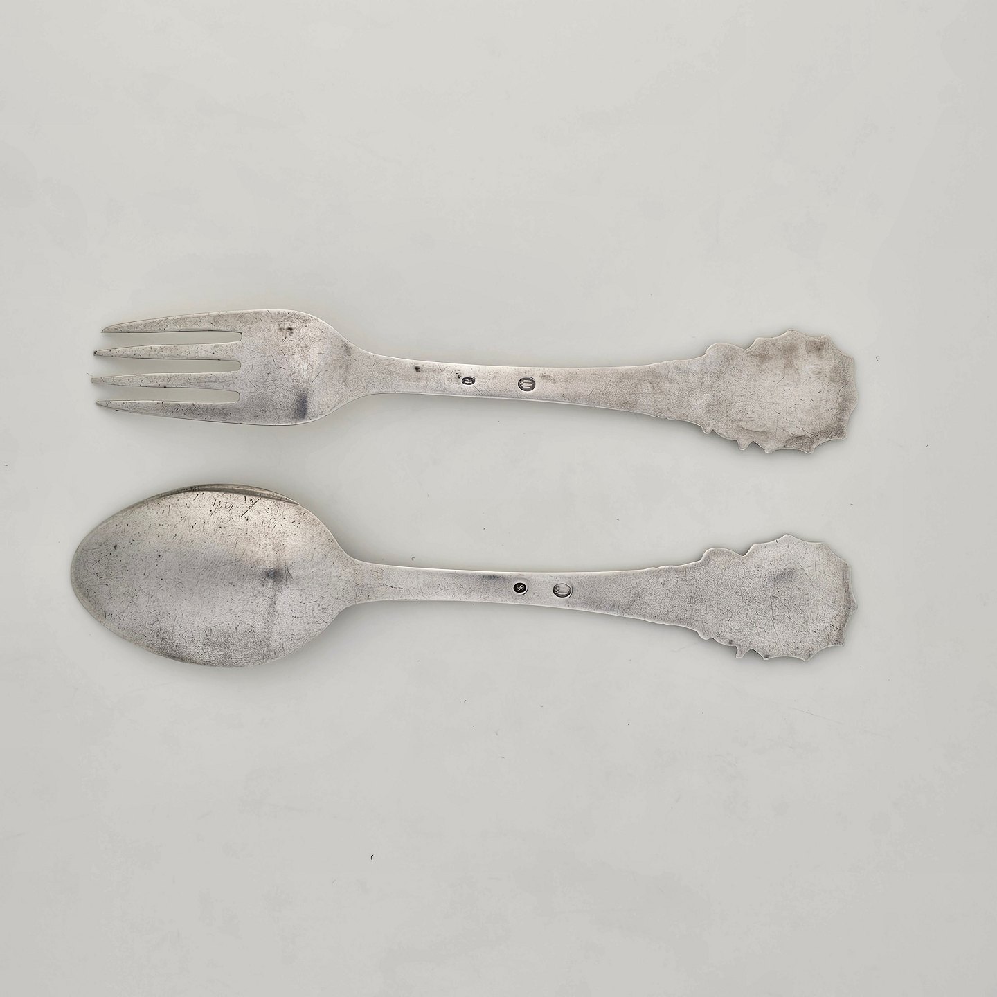 Gaffel og ske i tretårnet sølv med motiv af Ole Lukøje