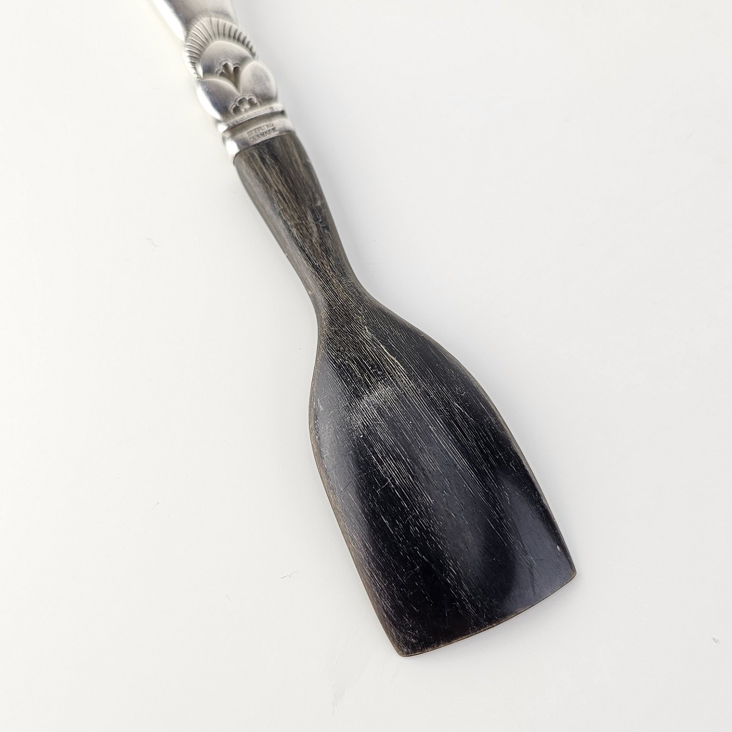 Kaktus barneske formet som skovl med hoved i horn og skaft af sølv