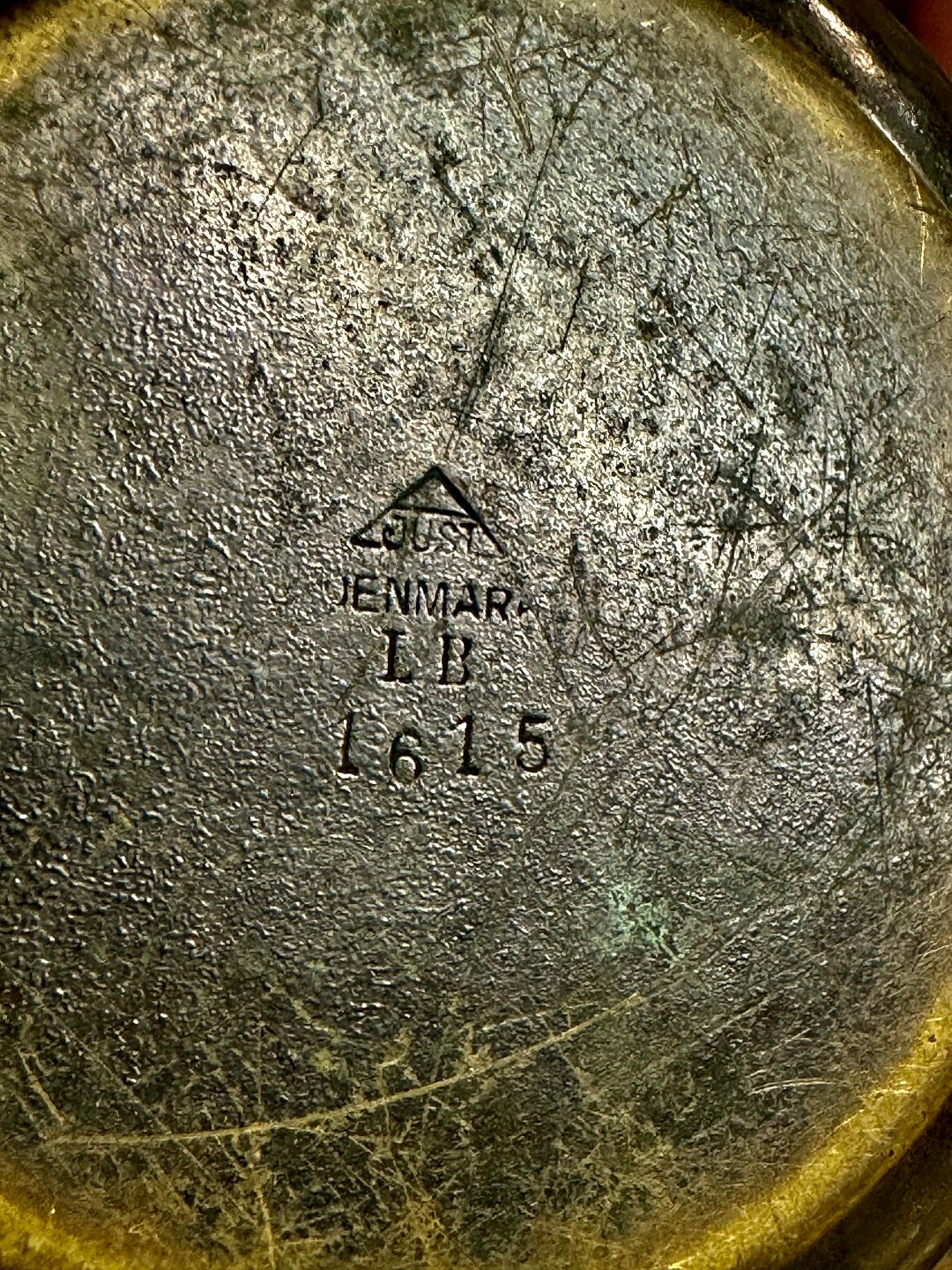 Bronze patinated just Andersen bowl. Appears in good condition With normal wear of use. Manufactured around 1940. Factory mark on the bottom with the well-known factory logo, model number 1615 and LB, which stands for Light Bronze. H. 7 cm Ø. 11 cm