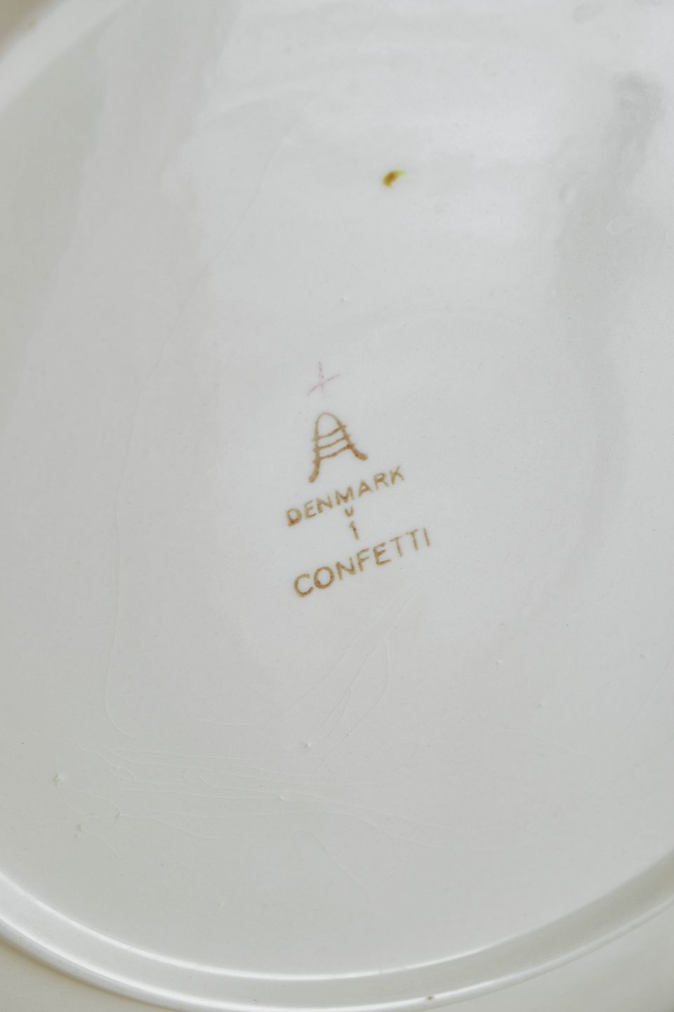 Founded in 1863 and merged with Royal Copenhagen in 1882, Aluminia introduced several colourful series in the mid-20th century, including “Confetti,” which combined functional simplicity with bright optimism. The series became emblematic of Danish postwar modernism and remains highly sought after among collectors today.