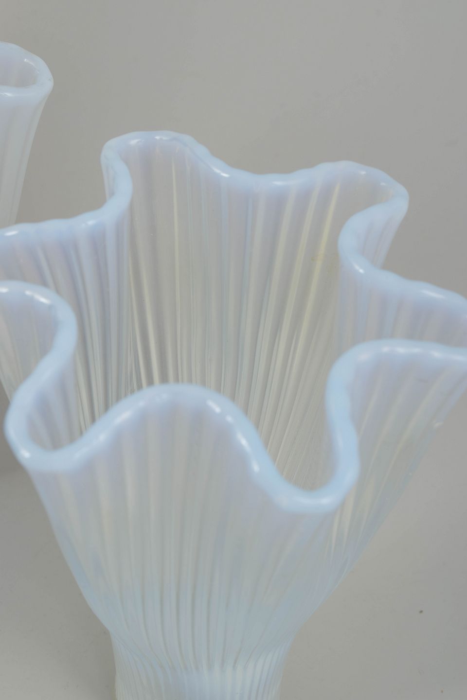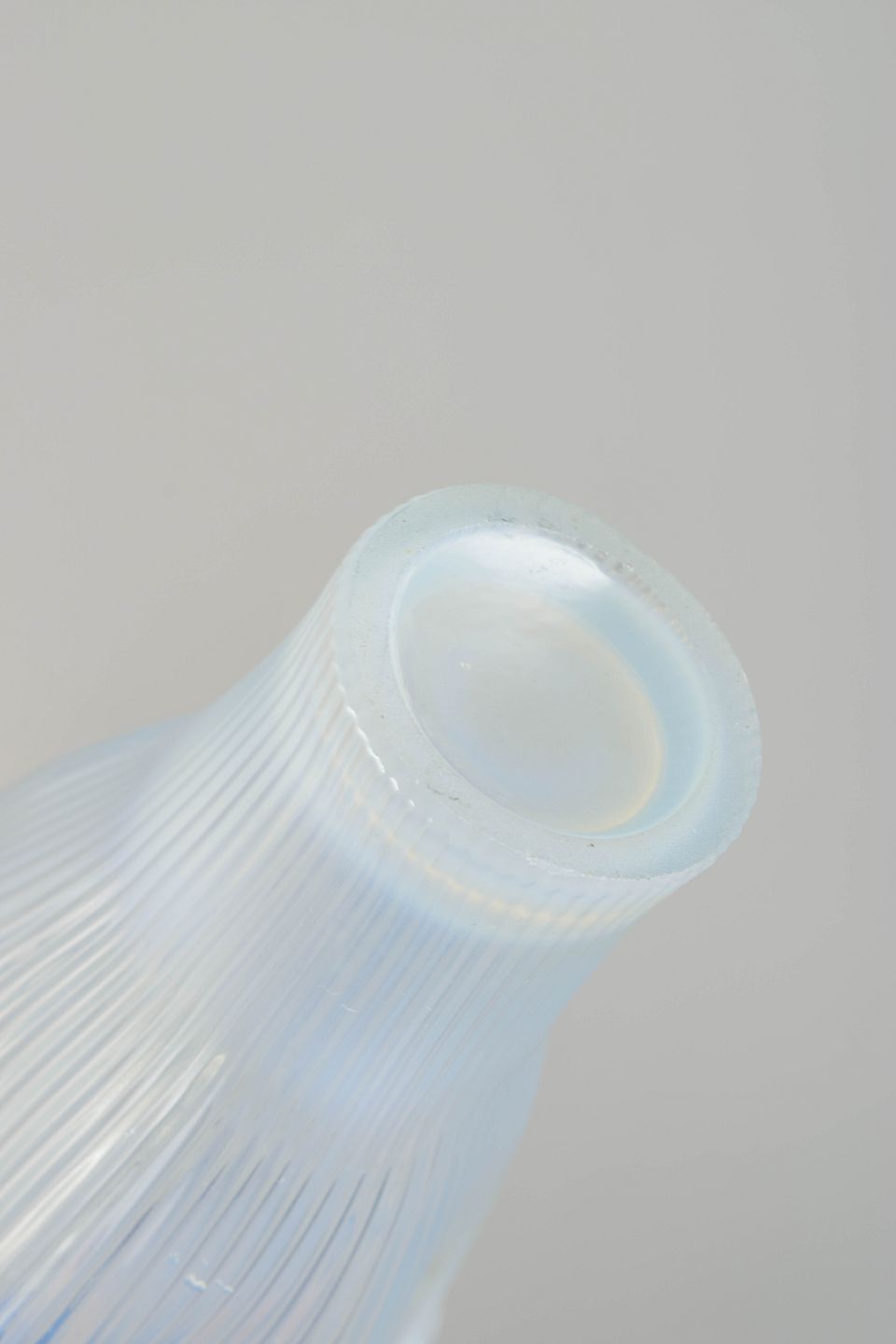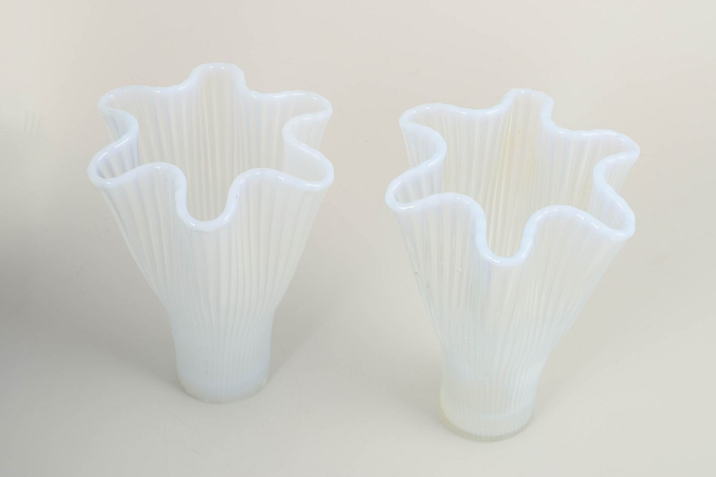 A pair of mouth-blown vases in opalised glass from the “Reffla” series, designed by Arthur Percy for Gullaskruf. The series is defined by its ribbed surface and softly undulating rim, accentuating the elegant translucency and light play of the glass.