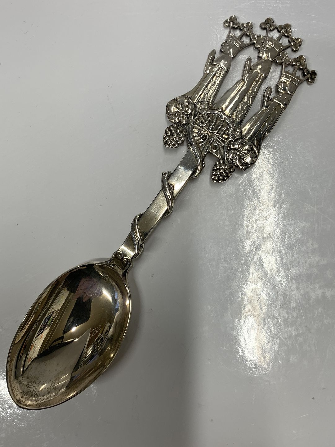 The motif depicts the three kings or wise men from the East, with flower-crowned heads.