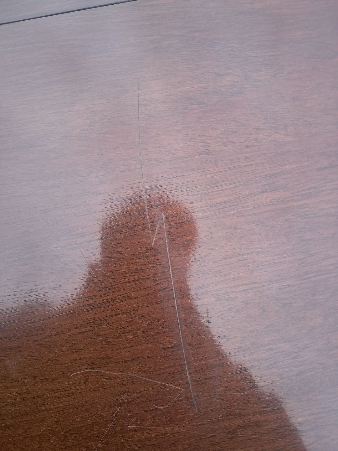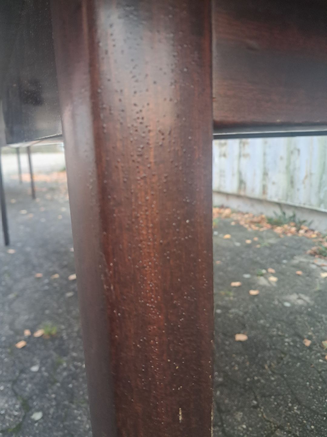 Det har brugsspor og lakken bobler lidt op på benene. (se foto)