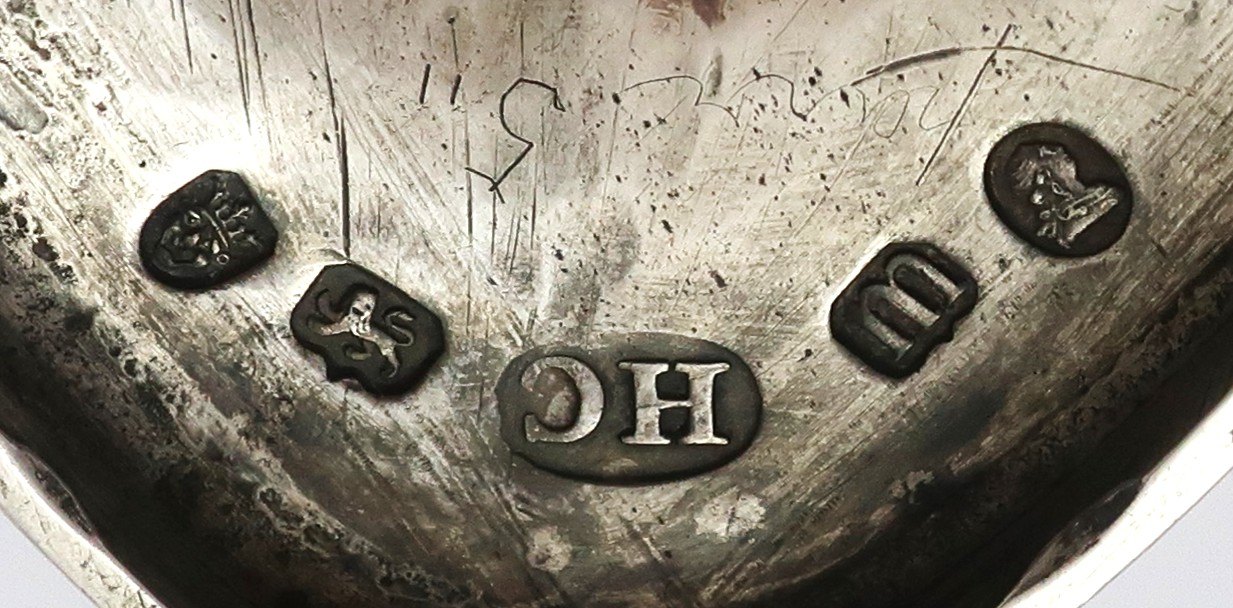 England. Henry Chawner, London (H C). Sterling salt cellar / spice cellar. Gilded inside. Height 7 cm. Width 14 cm. Produced 1787