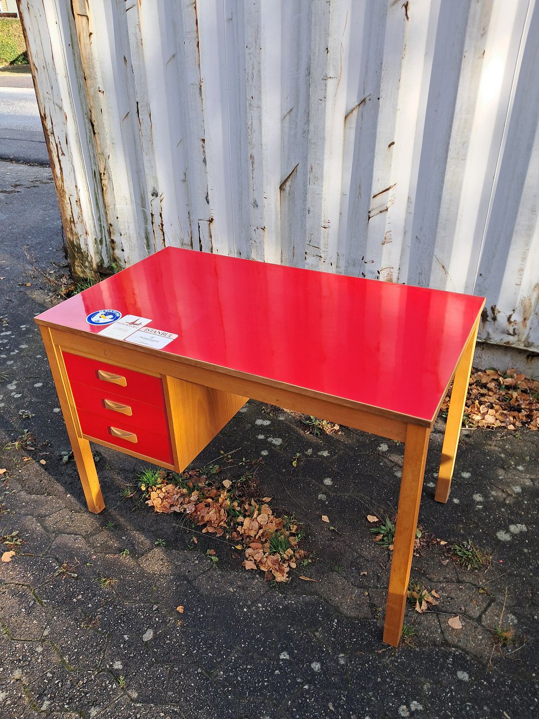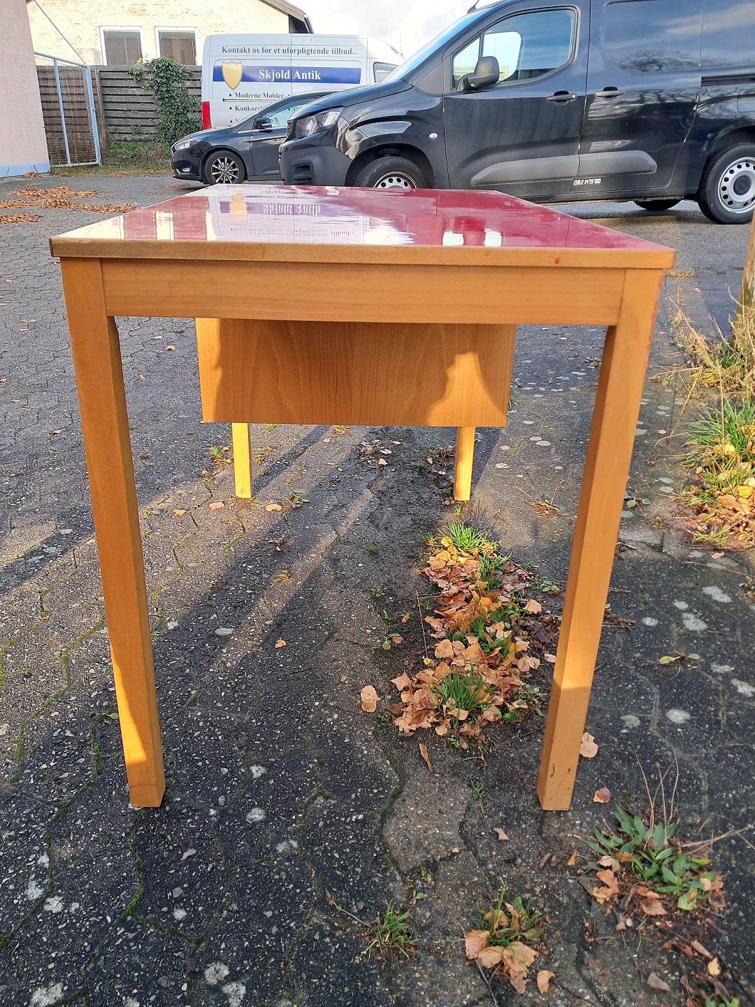 Skrivebord i bøgetræ med formikaplade, fra 1980erne.