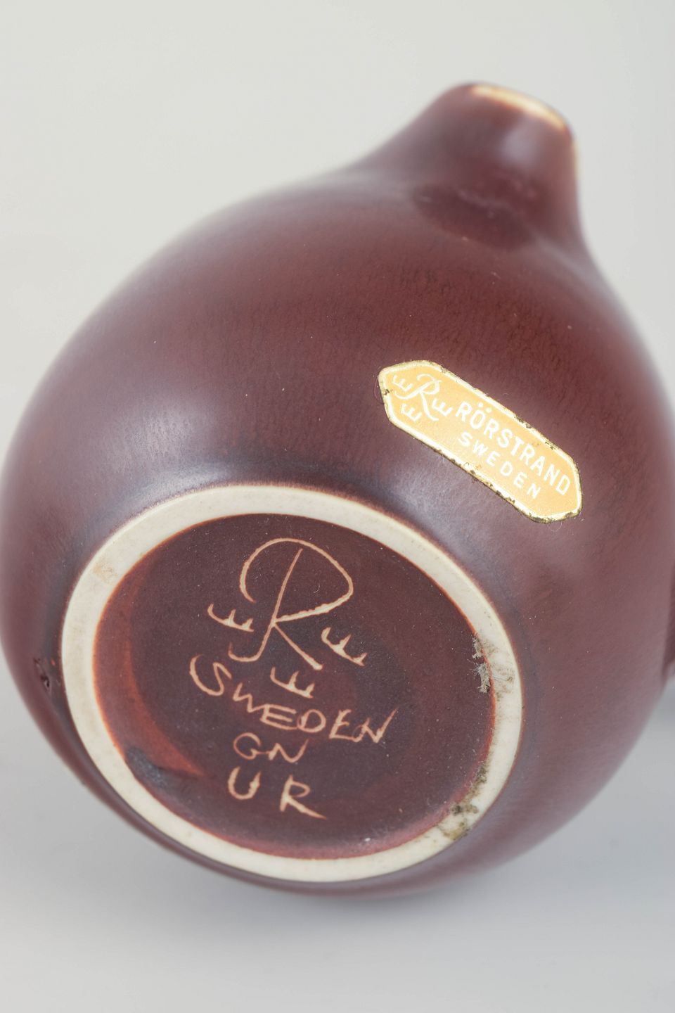 Gunnar Nylund was one of Rörstrand’s most influential designers of the 20th century. His work blends functionality with sculptural softness, often realised in matte, richly toned glazes. Creamers and small utilitarian pieces like this one demonstrate his mastery of proportion and his ability to elevate everyday objects into refined works of design.