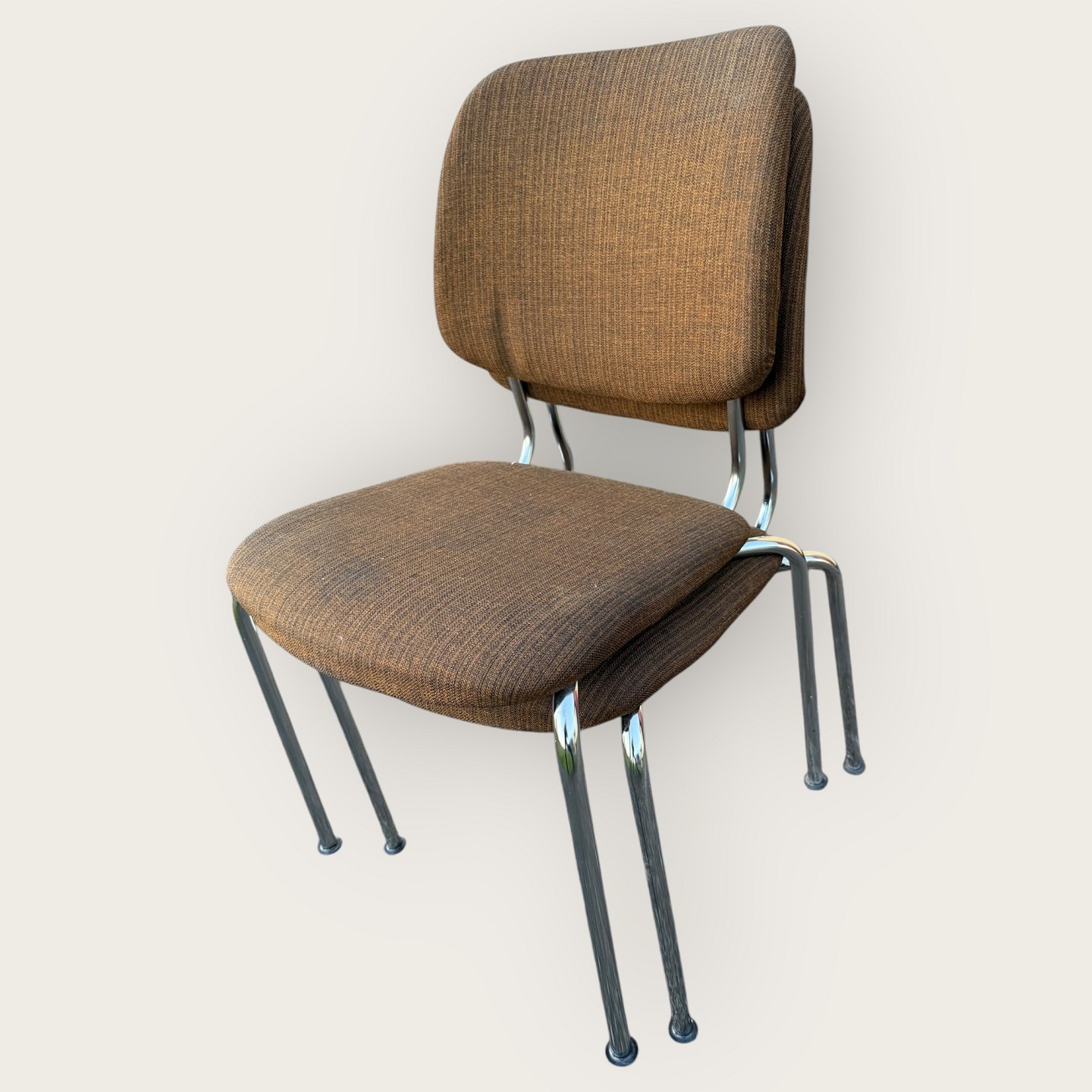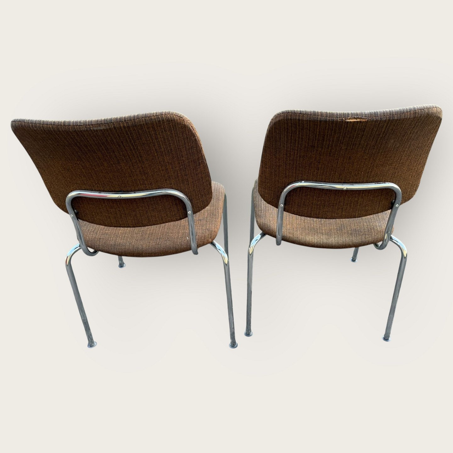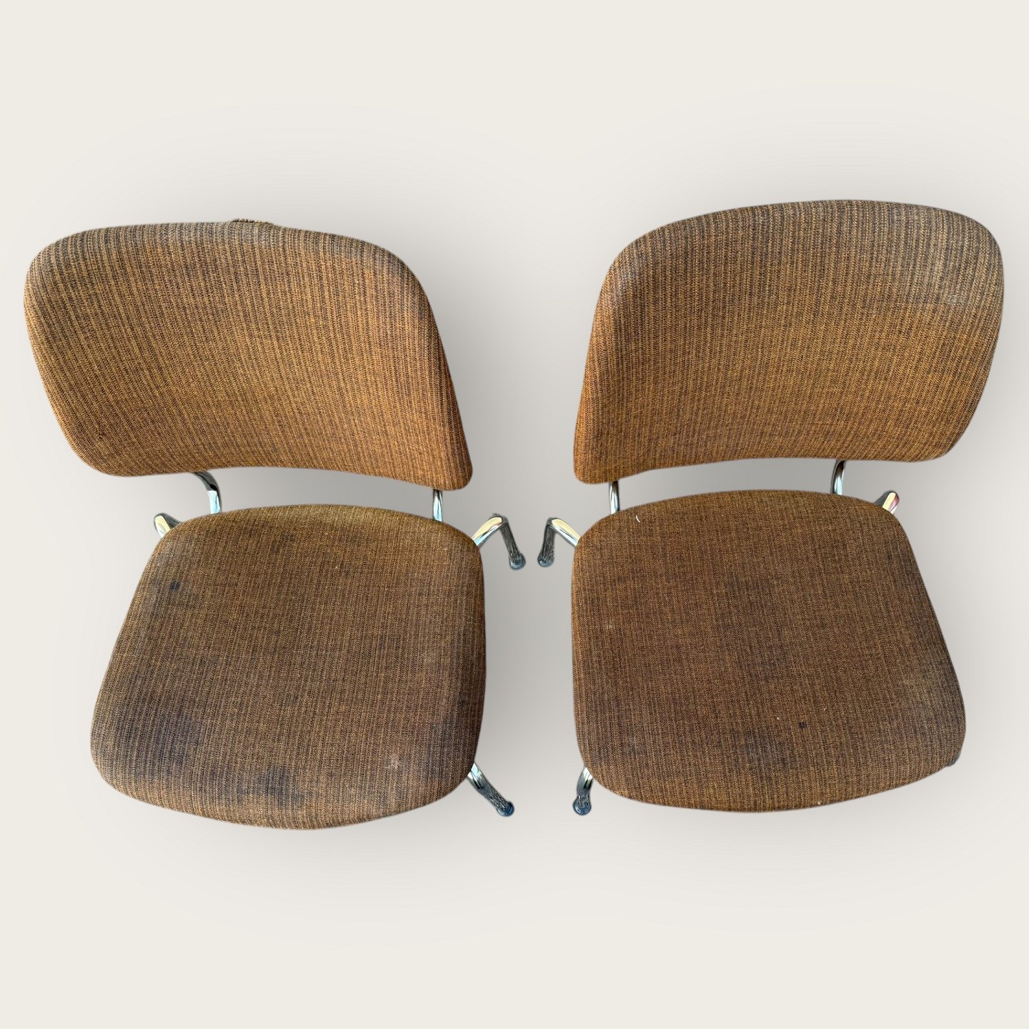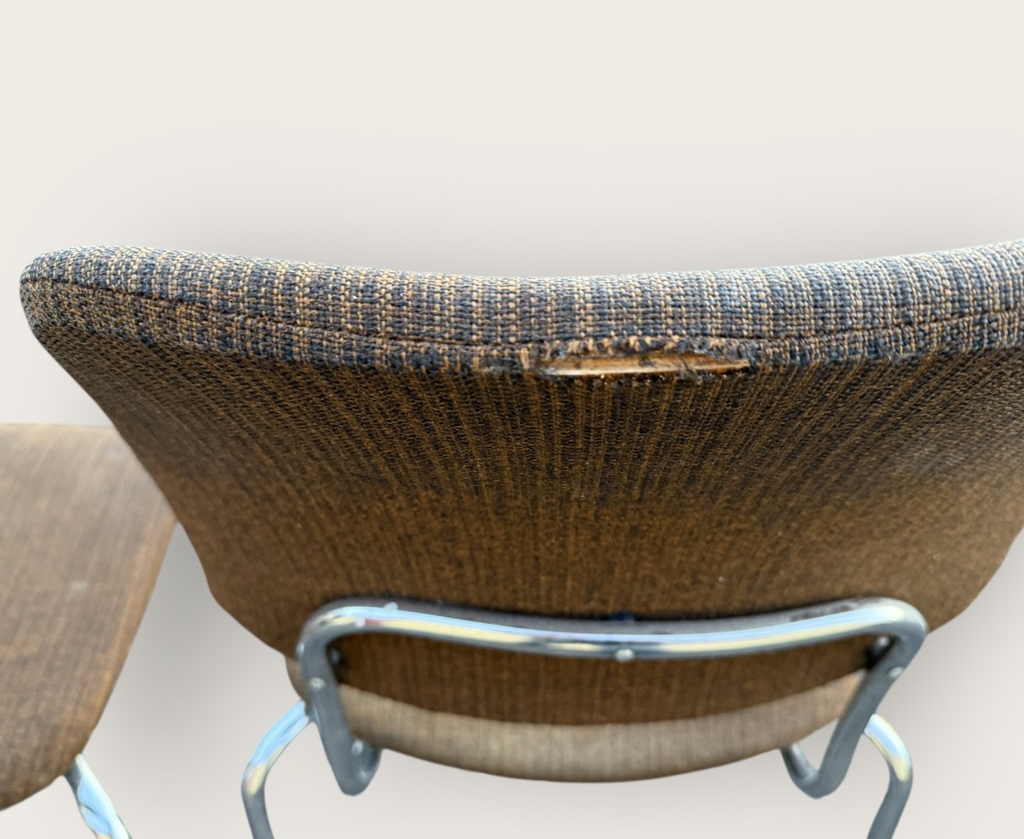 Two chairs with metal frames and fabric upholstery, from the 1950s-1970s, Frames in fine condition, upholstery with signs of wear.