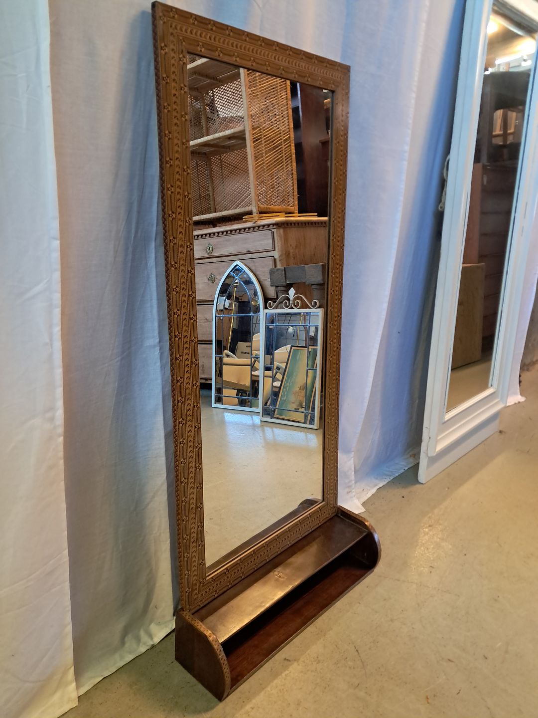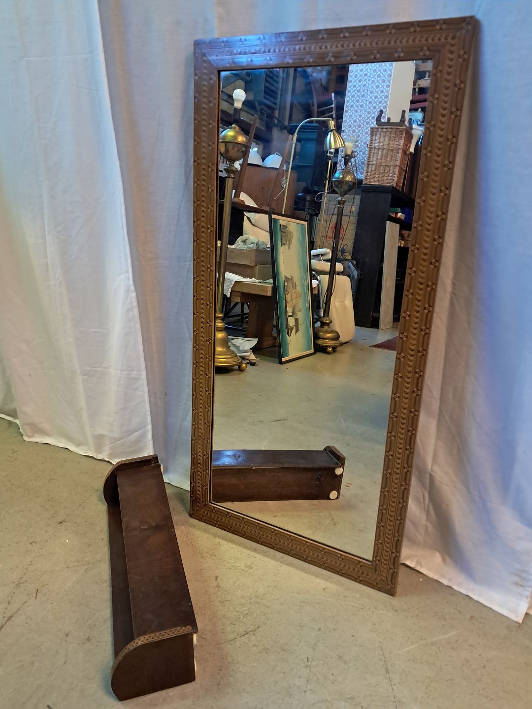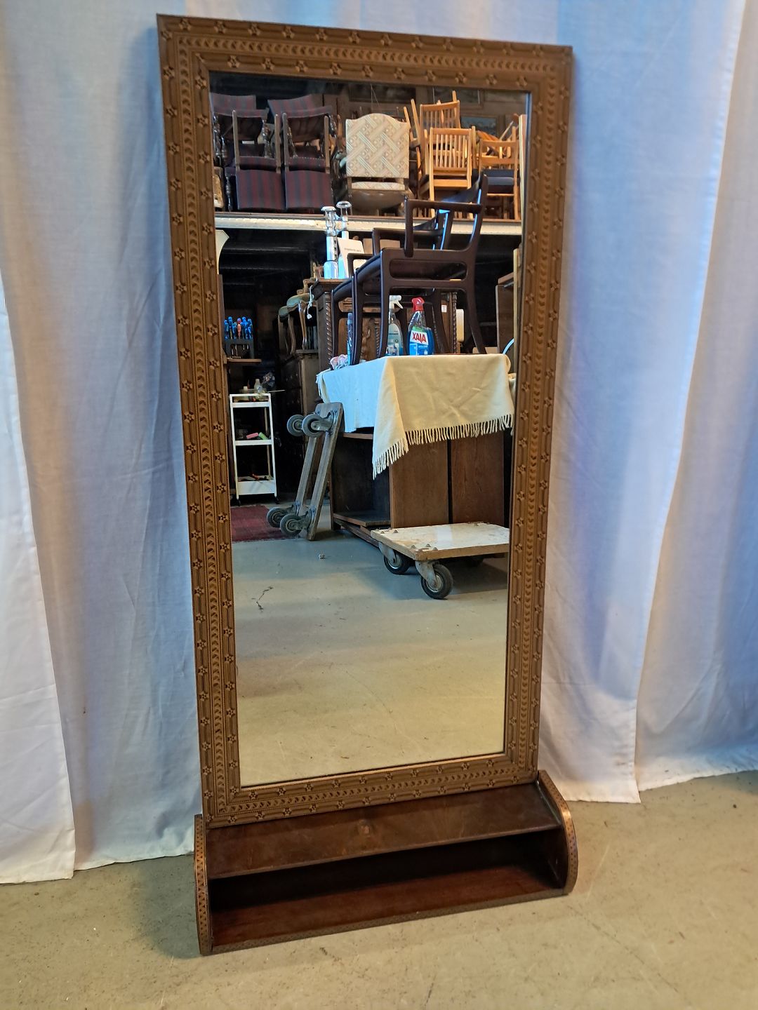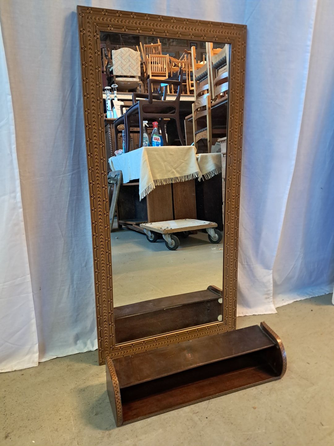 Spejl i fineret mahogni med intarsia, fra 1950erne.