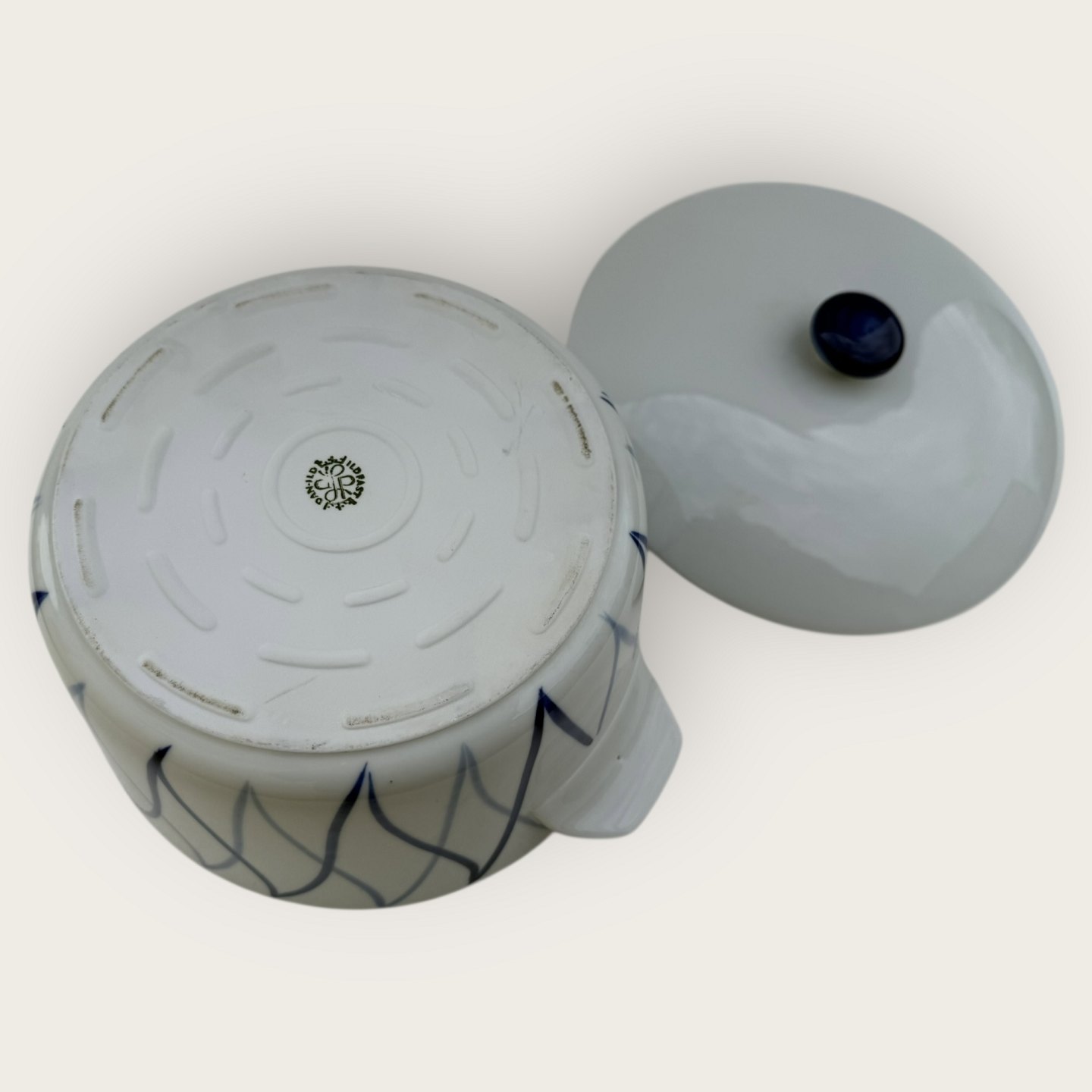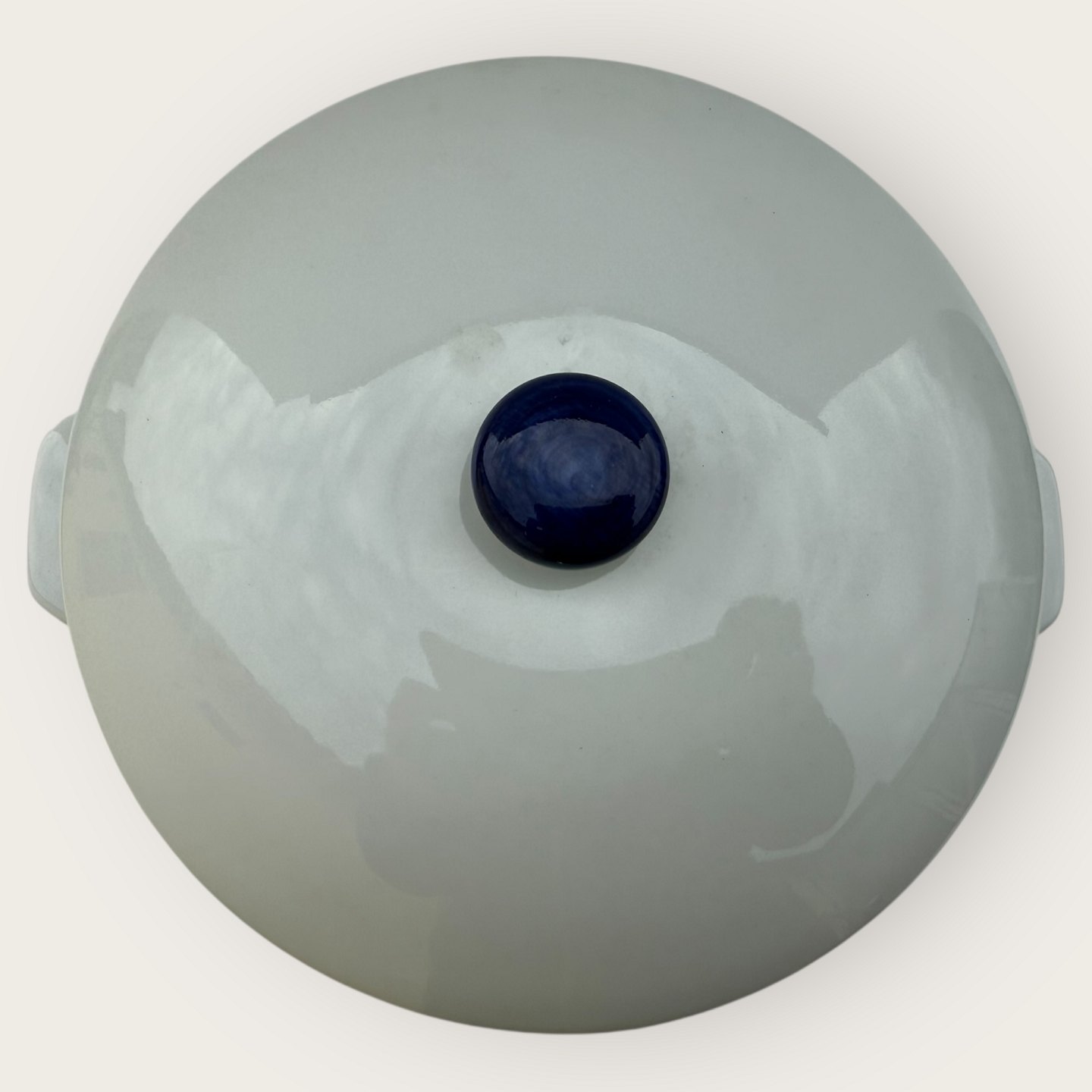 Lyngby, Danild 40, Blue flame, Pot with lid and handle, diameter 20.5cm, 25 cm wide with handle, 10.5cm high, 1st grade, Design Axel Brüel & Egon Mortensen *Good condition*