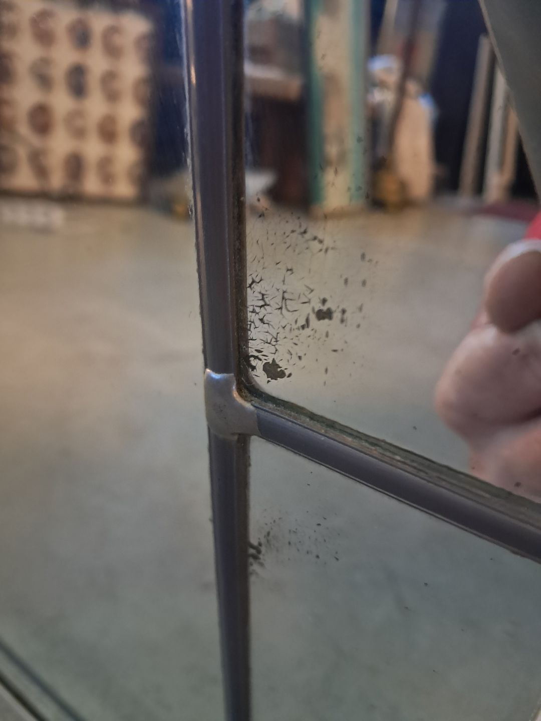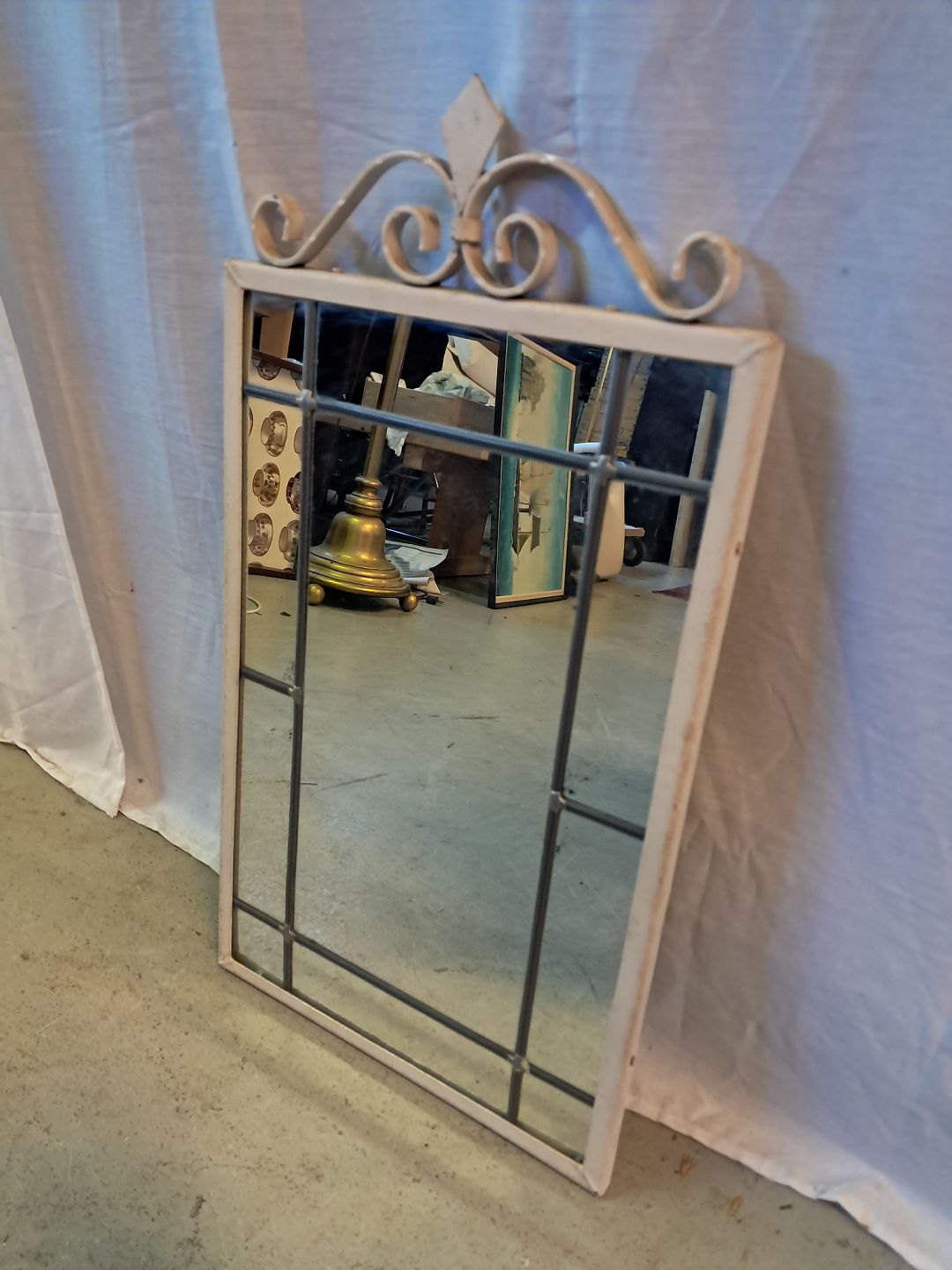 Spejl i malet smedejern med blyindfattet spejlglas, fra 1930erne.
