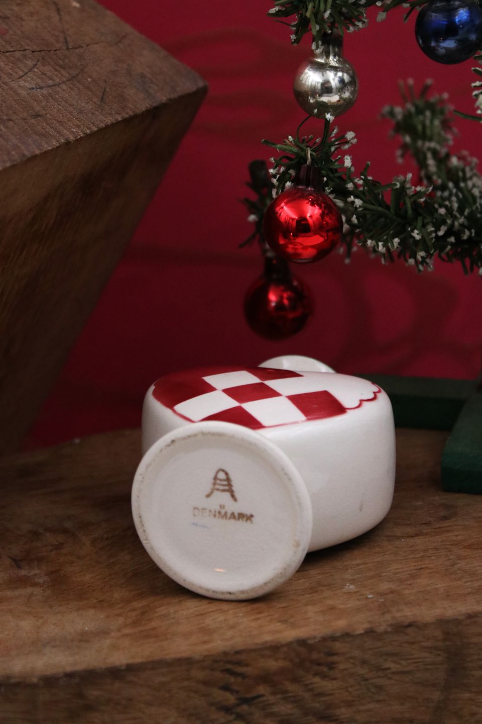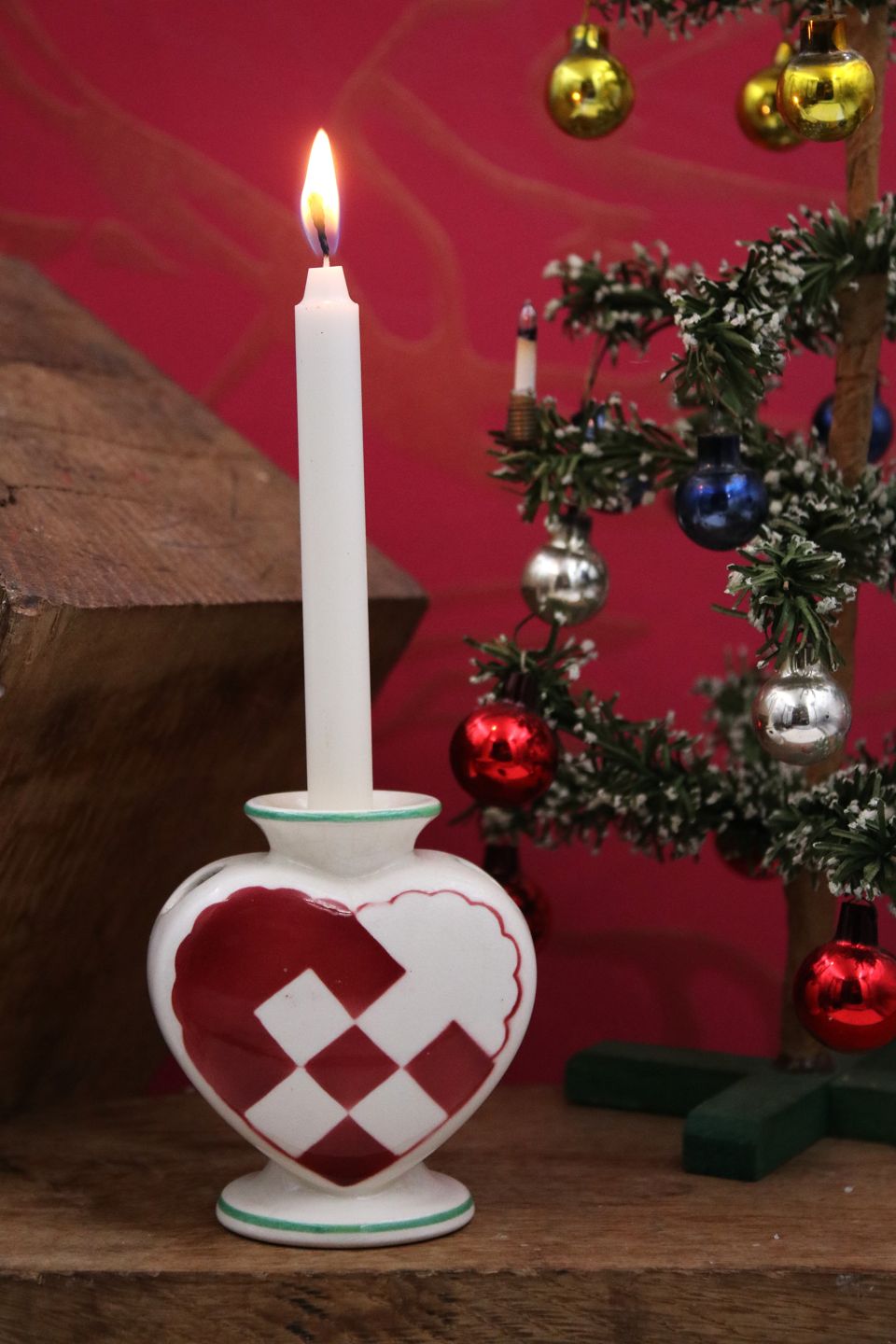 Old red Aluminia faience Christmas heart for small candle. H: 7.5cm.