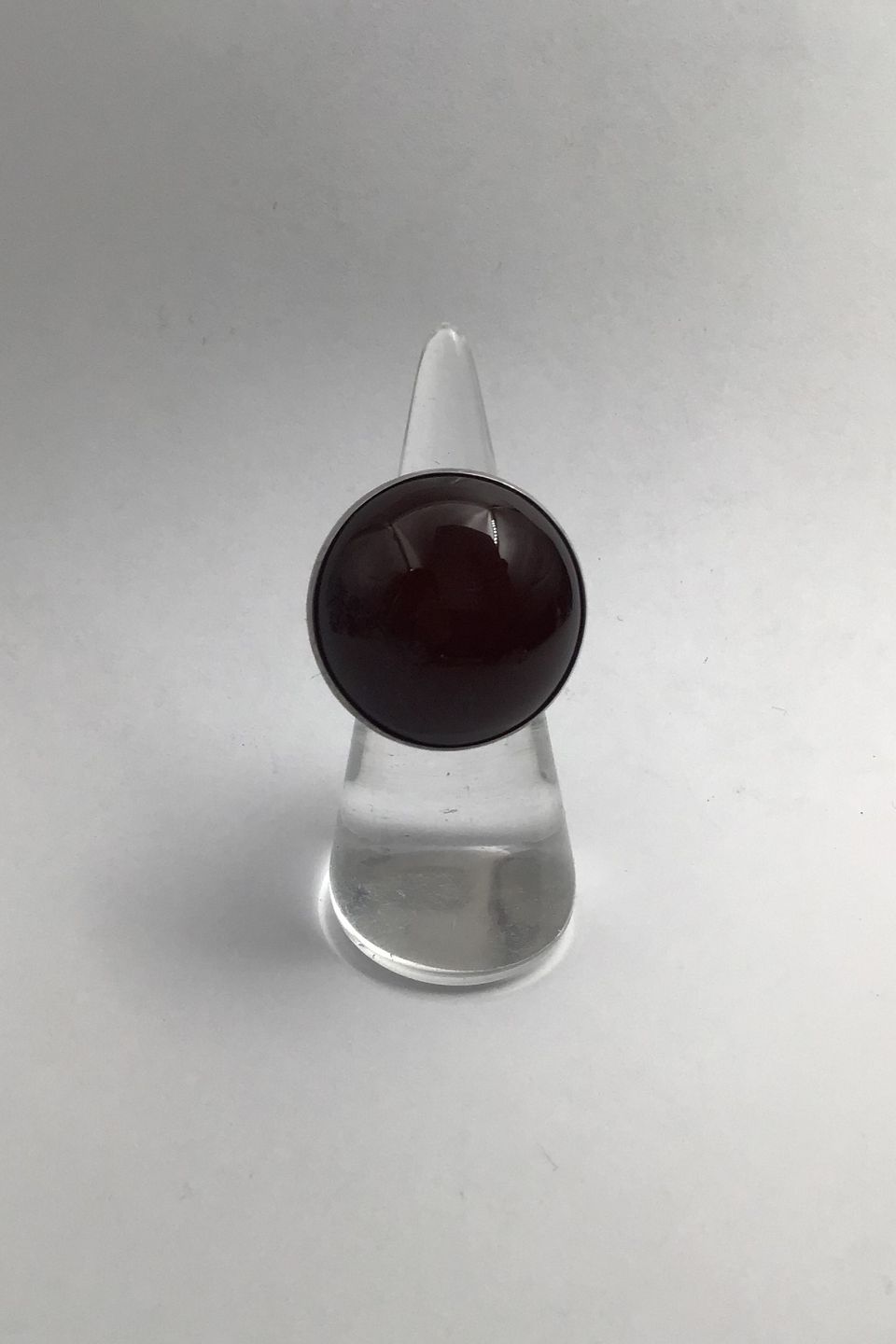 Georg Jensen Sterling Silver Ring No. 90 C (Red Brown Agate) Measures Diam 2.5 cm (0.98 inch) Ring Size 49 (US 5) Weight 14.8 (0.52 oz)