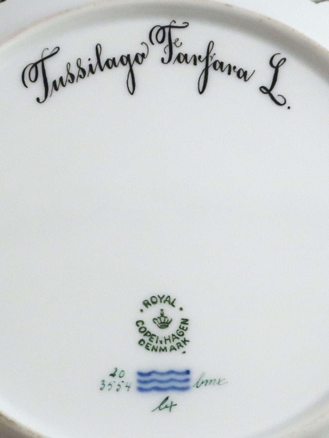 Royal Copenhagen Flora Danica. Lunch plate with open-work border. Design # 3554. Diameter 23 cm. (1 quality). Tussilago farfara L