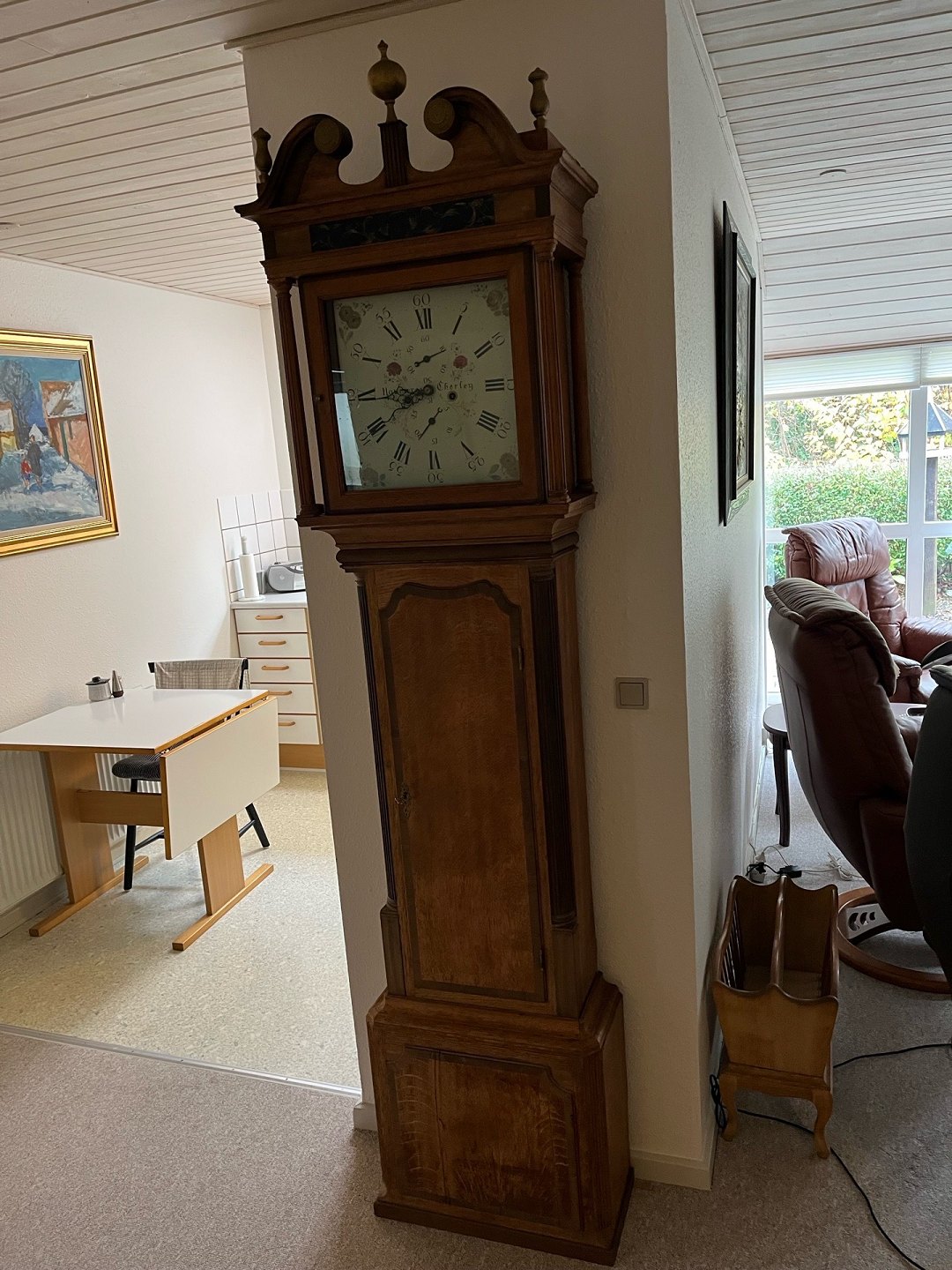 Stand clock Grandfather Clock with dial in Roman letters. the clock is in great condition. sold to the highest bidder. make an offer.