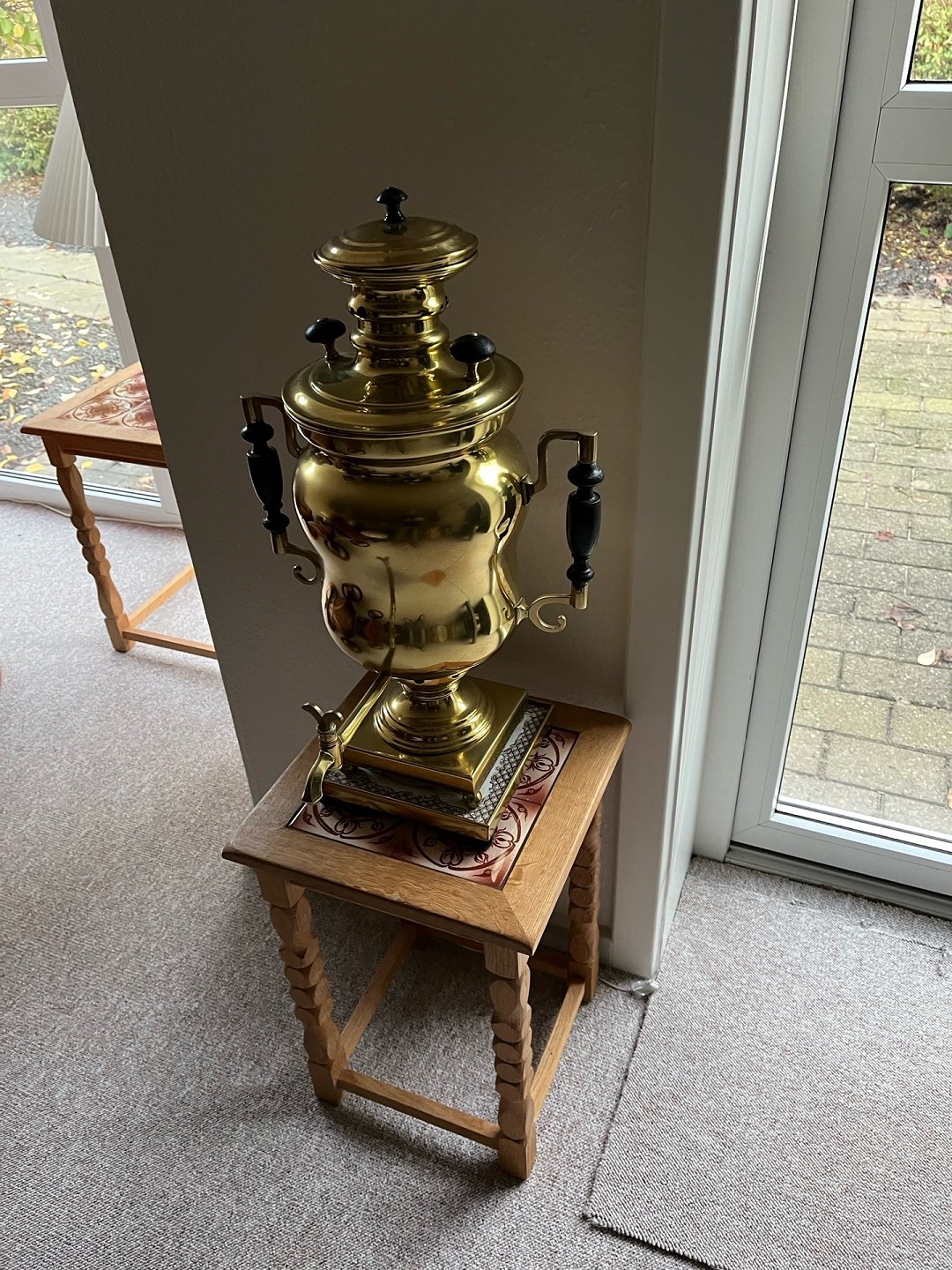 | Samovar to boil water for tea. Make an offer. Our concept. Purchase of newer/used furniture. Thorough cleaning and treatment. Viewing by appointment. Free delivery throughout Denmark to the curb. See also our other designer furniture, including Mogens Hansen. S�ren Lund J�rgen gammelgaard Bruno Mattsson Nielaus Arne Jacobsen Fritz Hansen Stouby Erik J�rgensenSkalma Boconcept Bolia Ryesberg Skovby CPH and many others. See also our other ads on our website Mrretrodesign.dk