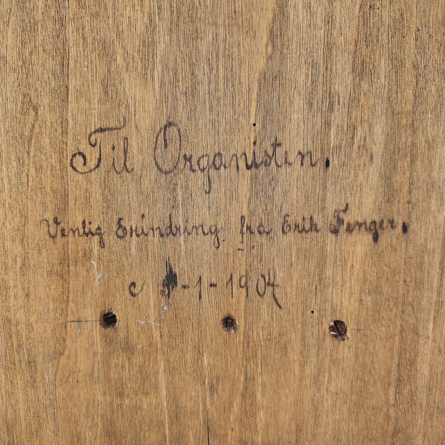 På bagsiden står der skrevet "Til organisten, venlig erindring fra Erik Fenger" 1. 1. 1904