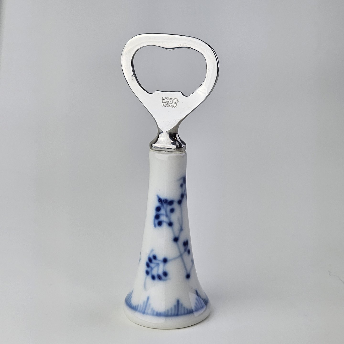 Oplukker i kongeligt porcelæn med hoved i rustfrit stål fra stellet Musselmalet.