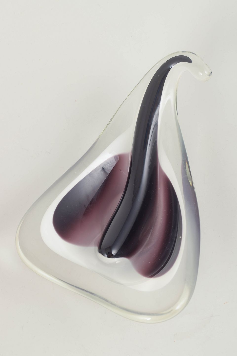 Organically shaped art-glass bowl in clear and violet-toned glass, mouth-blown with the characteristic sweeping form of Kedelv’s celebrated Coquille series.