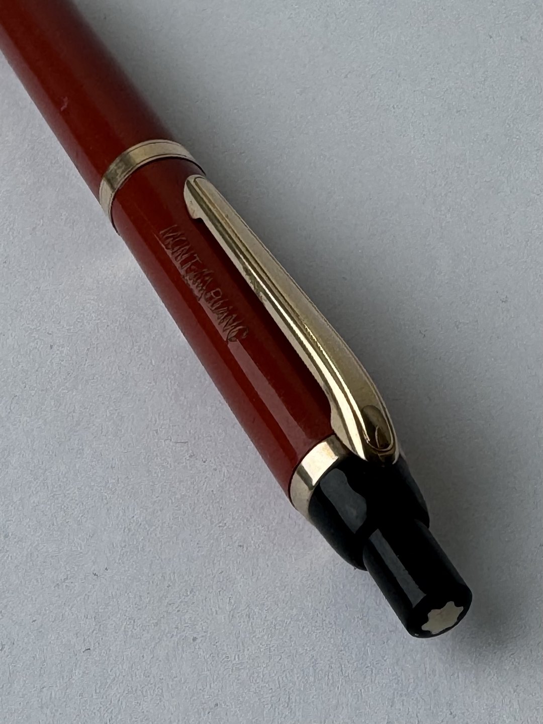 Coral red Montblanc no. 25 mechanical pencil / mechanical pencil / pencil from the 1950s. Appears in very good condition. Ready to be used. Product name and model number imprinted on the pen. L. 12.2 cm