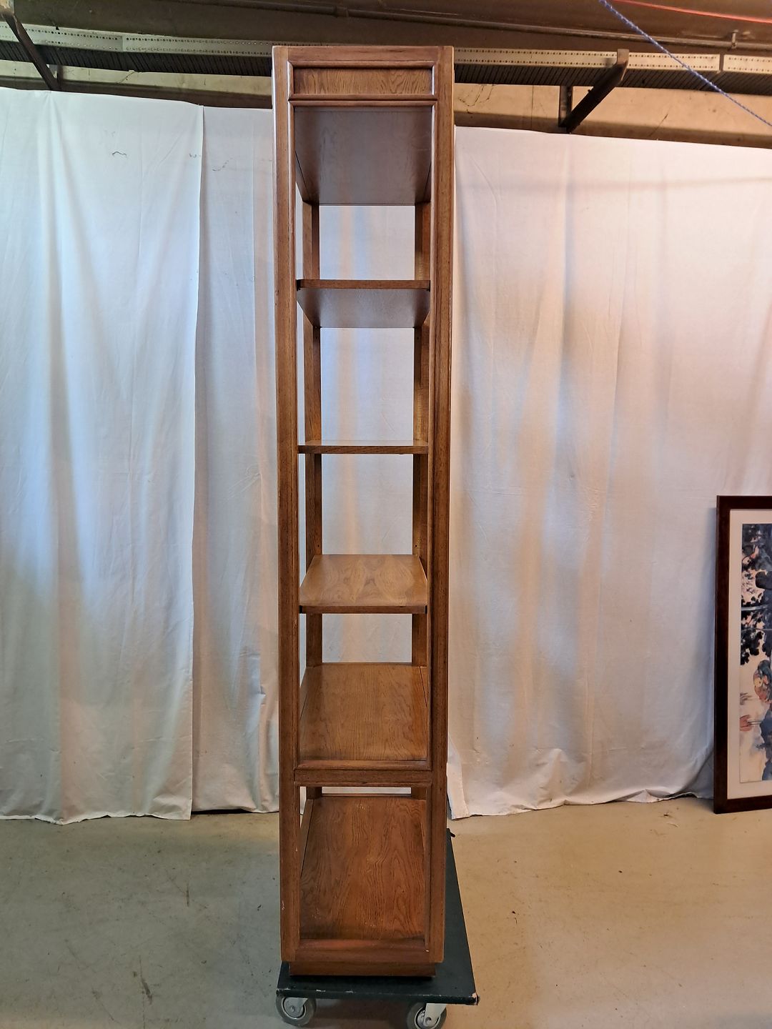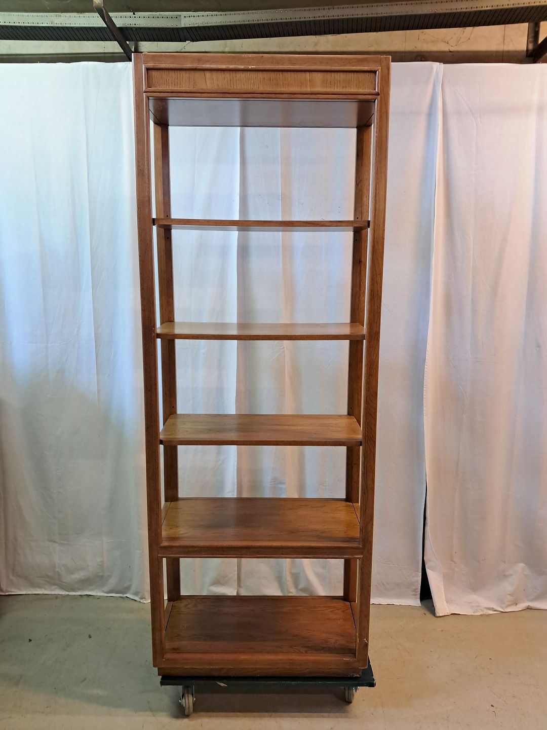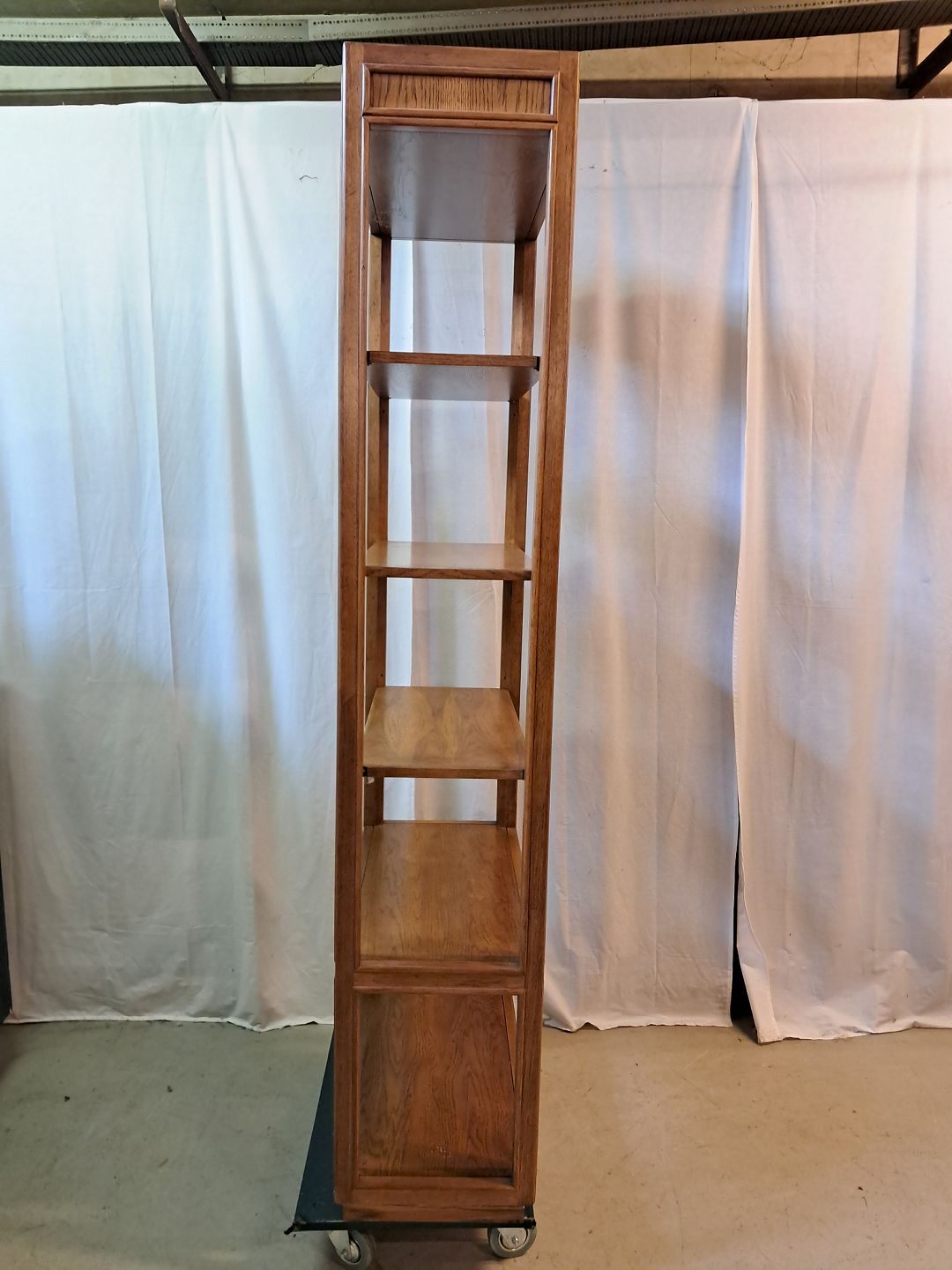 Amerikansk reol i fineret egetræ, fra 1990erne.