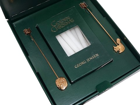 Georg Jensen Golden Christmas Two Golden Christmas Candle holders - Cone and Squirrel in gift box with small candles.