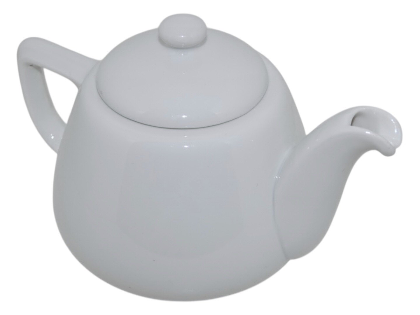 Small white teapot in thick porcelain with logo on the side
