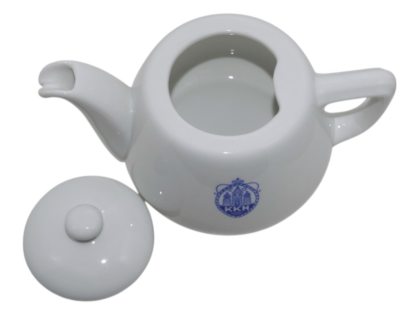 Royal Copenhagen small white teapot in thick porcelain with logo on the side (KKH = Københavns Kommune Hospital).