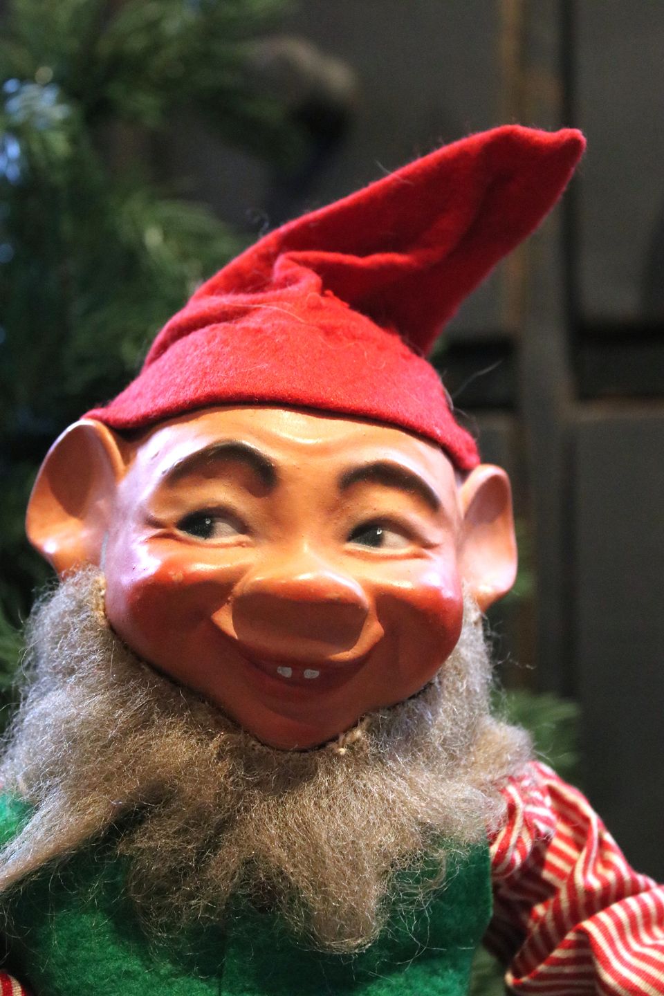 2 old shop elves with felt clothes and faces in painted papier-mâché. (Mother and Father)...