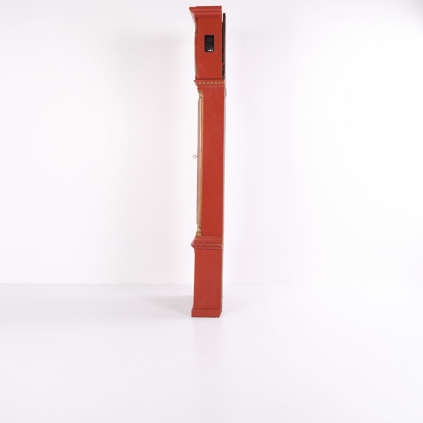 Longcase Clock / Bornholm Clock – Red Painted – Carved Details – c. 1820s