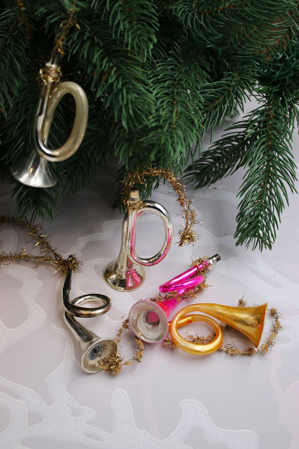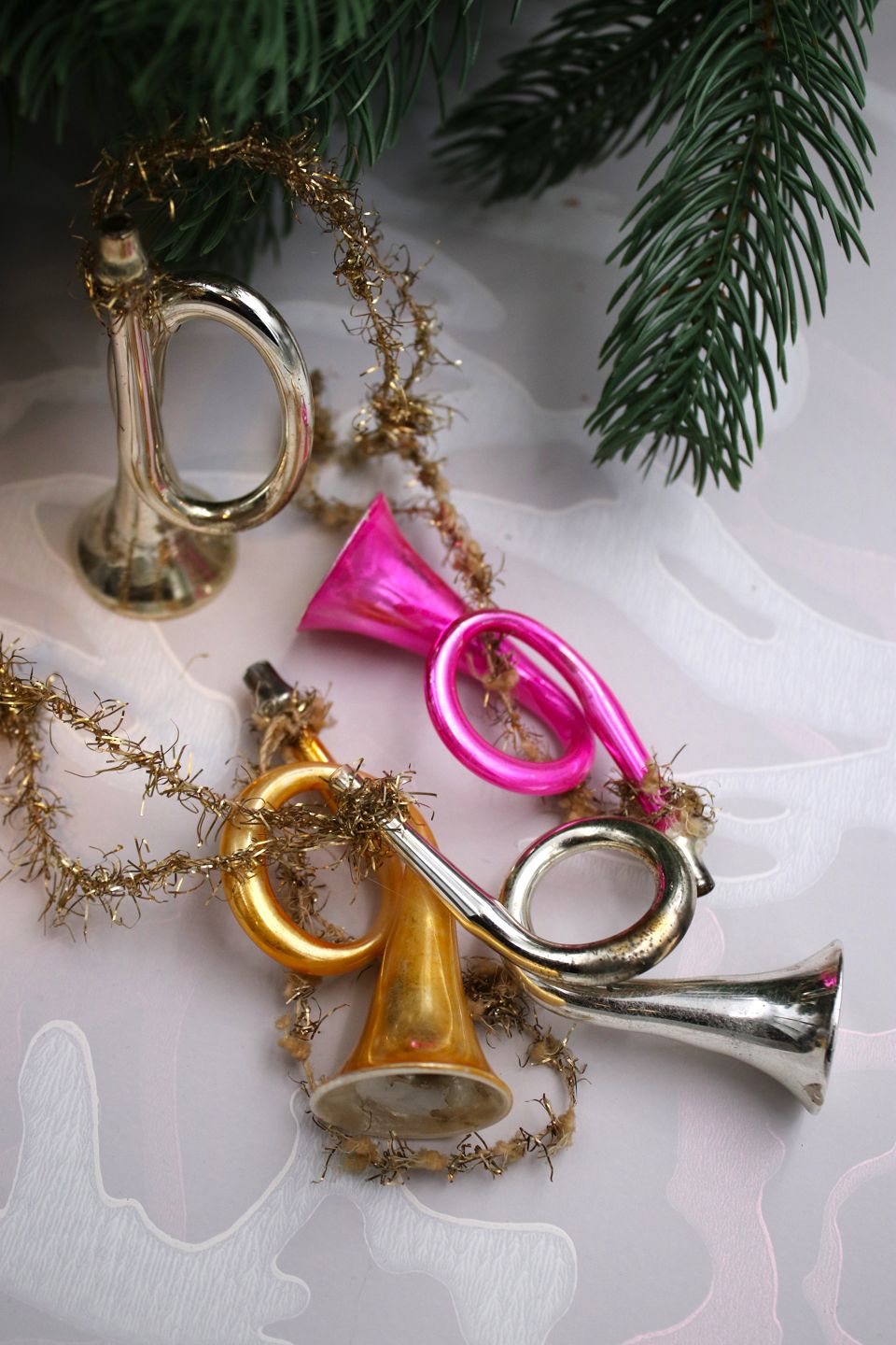Old Christmas tree ornament in the shape of Christmas trumpets
