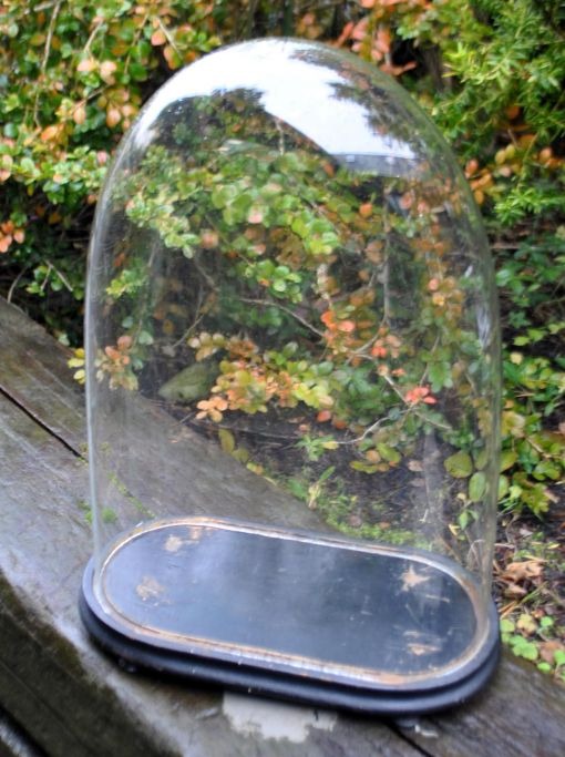 French clock glass bell on oval wooden base, 19th century. H.: 46 cm. L.: 33 cm.