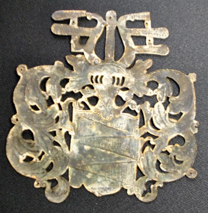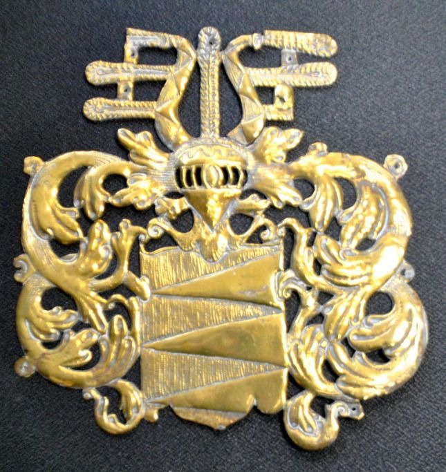Brass shield with noble arms, 17th-18th century, Denmark.