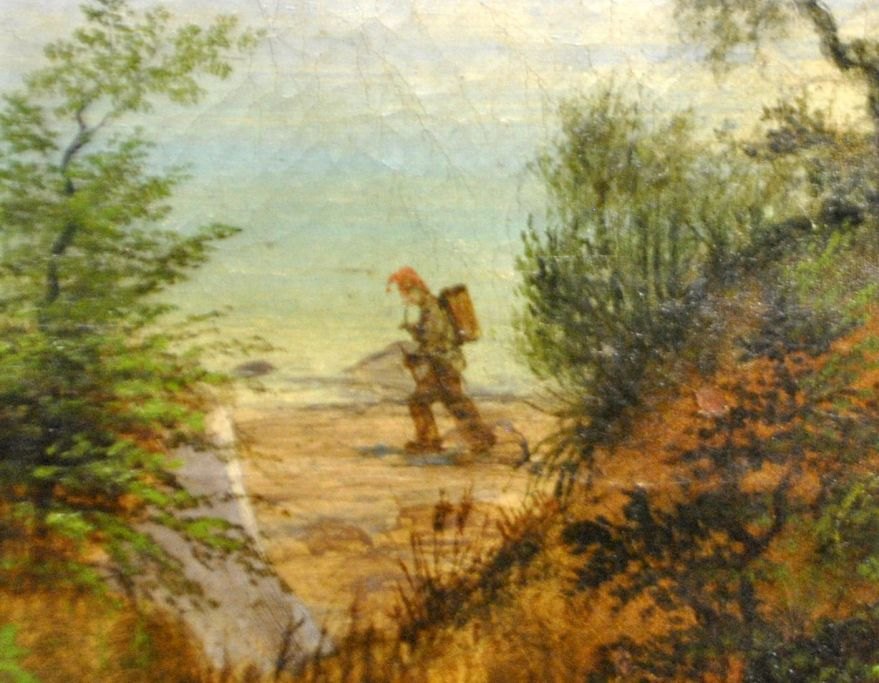 Holm, Peter (1798 - 1875) Denmark: View over the bay of Aarhus towards Aarhus with the Cathedral. View from Risskov. In the foreground is a hiker. Unsigned. 40 x 55 cm.