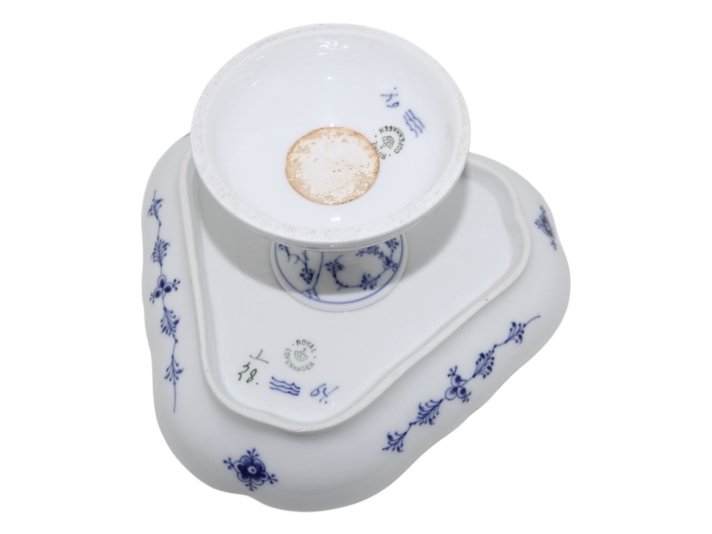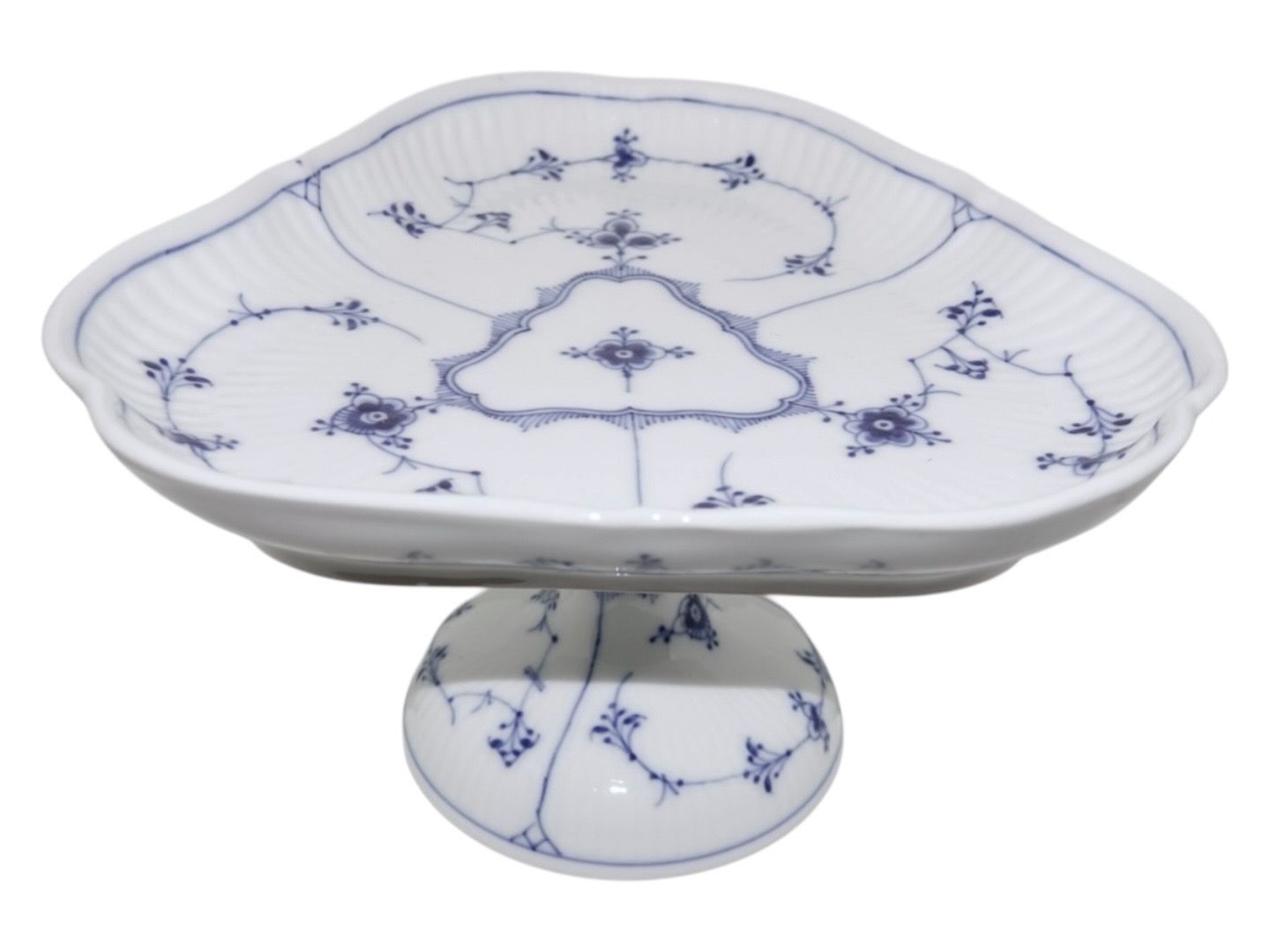 Royal Copenhagen Blue Fluted Plain, rare triangular cake bowl on stand.