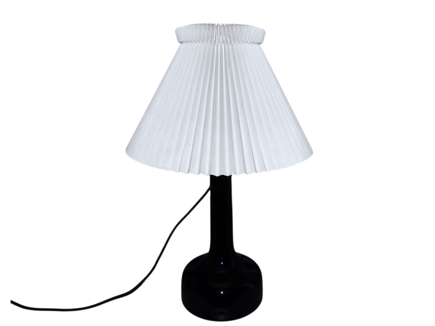 Tall dark blue art glass table lamp with an original Le Klint shade.