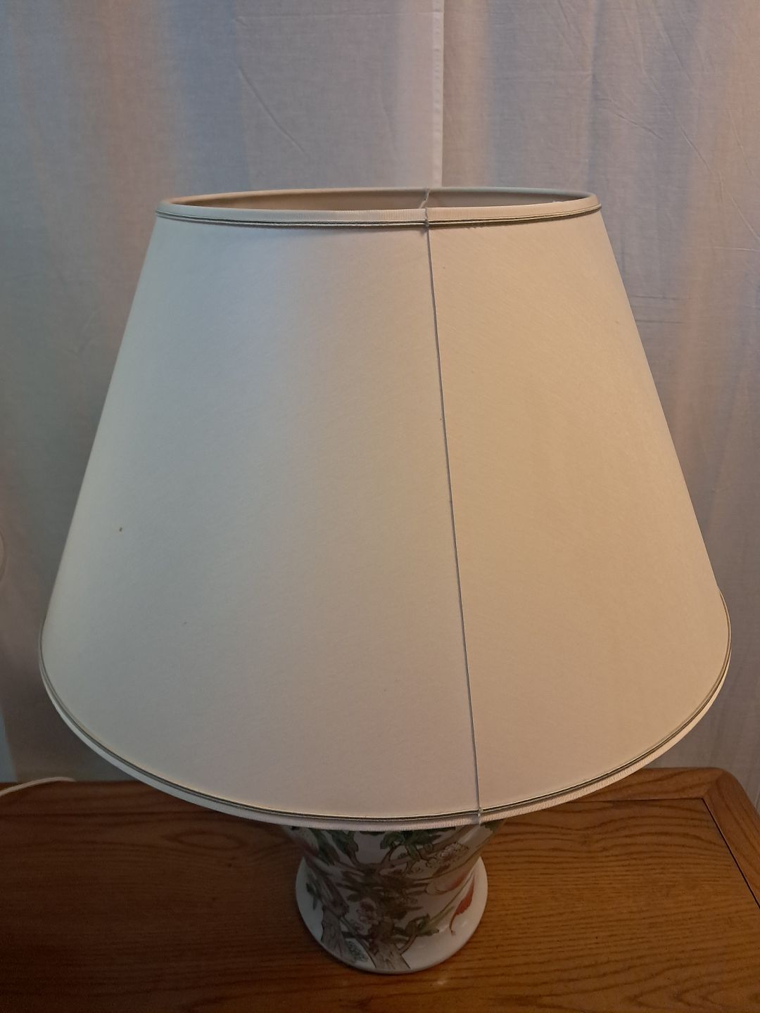 2 Asiatiske bordlamper i pocelæn med skærme, fra 1990erne.