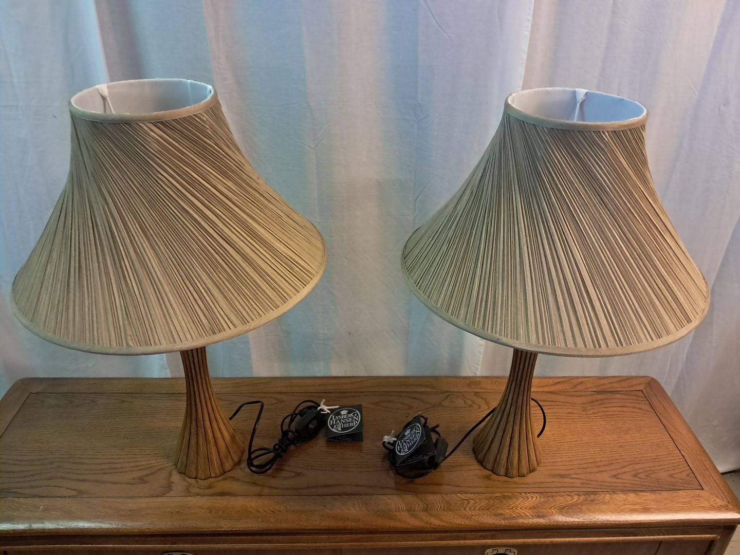 2 Lysberg Hansen og Therp bordlamper i pocelæn med skærme, fra 0erne.