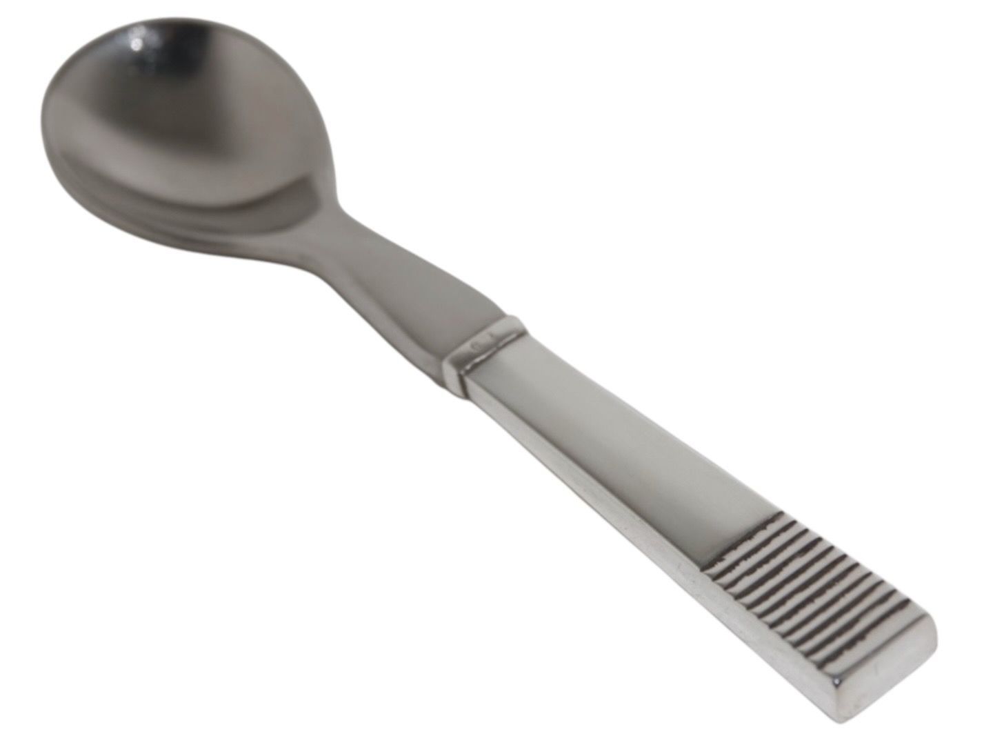 Georg Jensen Parallel (also called Relief), sterling silver and stainless steel, egg spoon.