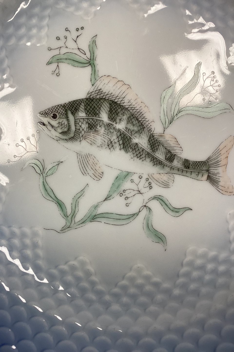 Bing and Grøndahl Blue Tone Fish Plate motif 9 Perch No. 716 - CHIPED/WORN
