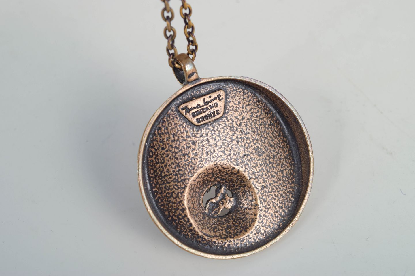 Bronze medallion in Laine’s characteristic Viking-inspired geometric relief design.