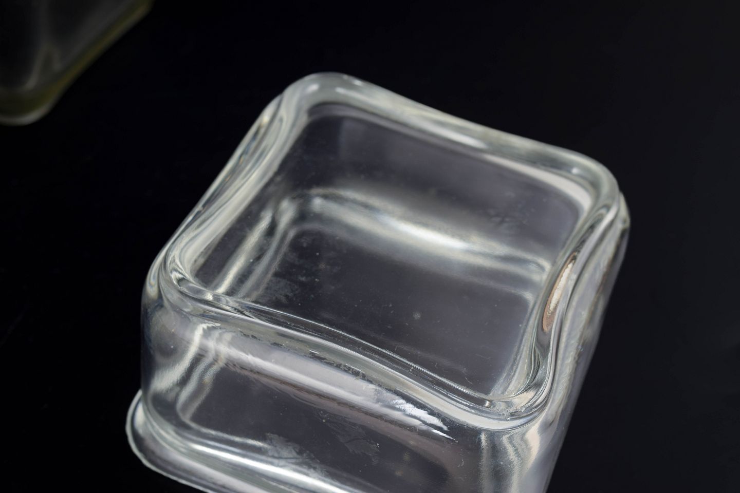 Set of three Wilhelm Wagenfeld “Kubus” glass boxes.